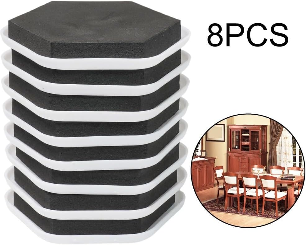 Product description Features:*8Pcs Set Furniture Sliding Pad hexagonal sliders with foam padding*Makes for moving heavy objects easy*Slides furniture without scratching the floor*Easy to use, Just slide under each leg and glide your furniture for across the floor*Works on vinyl, carpeting, wood floors, and ceramic tile*Can be used over and over again* andSpecifications:*Material:EVA+Plastic*Dimension: 65*65mm/2.56*2.56 inch(Approx)*Color: Black+White(As pictures show)*Quantity: 8 piecesPackageContent:8*Furniture Sliders Manufacturer Contact Information no