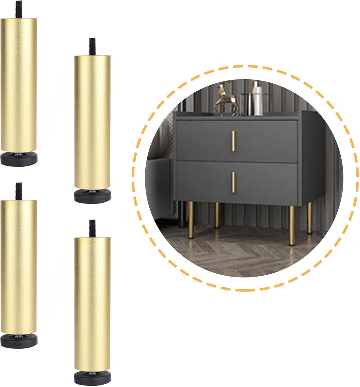 The furniture legs are made of upgraded and thickened aluminum alloy, with strong bearing capacity, not easy to deform, safe, 10 levels of oxidation resistance, not easy to oxidize, rust, fade, lose paint, and will not break in long-term use.The surface has been processed in multiple steps, smooth and burr-free, and will not scratch your tender hands; it can also move the furniture silently and protect the floor.☛ Product parameters. Product name: Furniture legs Material: 1mm thickened aluminum alloy Color: black, gold, silver Load: 300kg Package: 4 x furniture legs Whether customizable: Yes Application: kitchen, sofa, TV cabinet, table, coffee table, cabinet☛ Product advantages.upgrade thickened aluminum alloy, strong load-bearing capacity, not easy to deformation, safety.10 grade anti-oxidation, not easy to oxidation, rust, fading.smooth surface, not easy to leave fingerprints.can adjust the height by itself, the adjustable height is 0-8mm.Easy to install: the middle screw can be fixed.☛Caution.Please choose the correct height according to your needs.The products are measured manually and may have deviations, please refer to the actual product.If you have any questions or concerns about our products at any time, please contact us via email, and we will make every effort to provide you with the best solution within 24 hours.