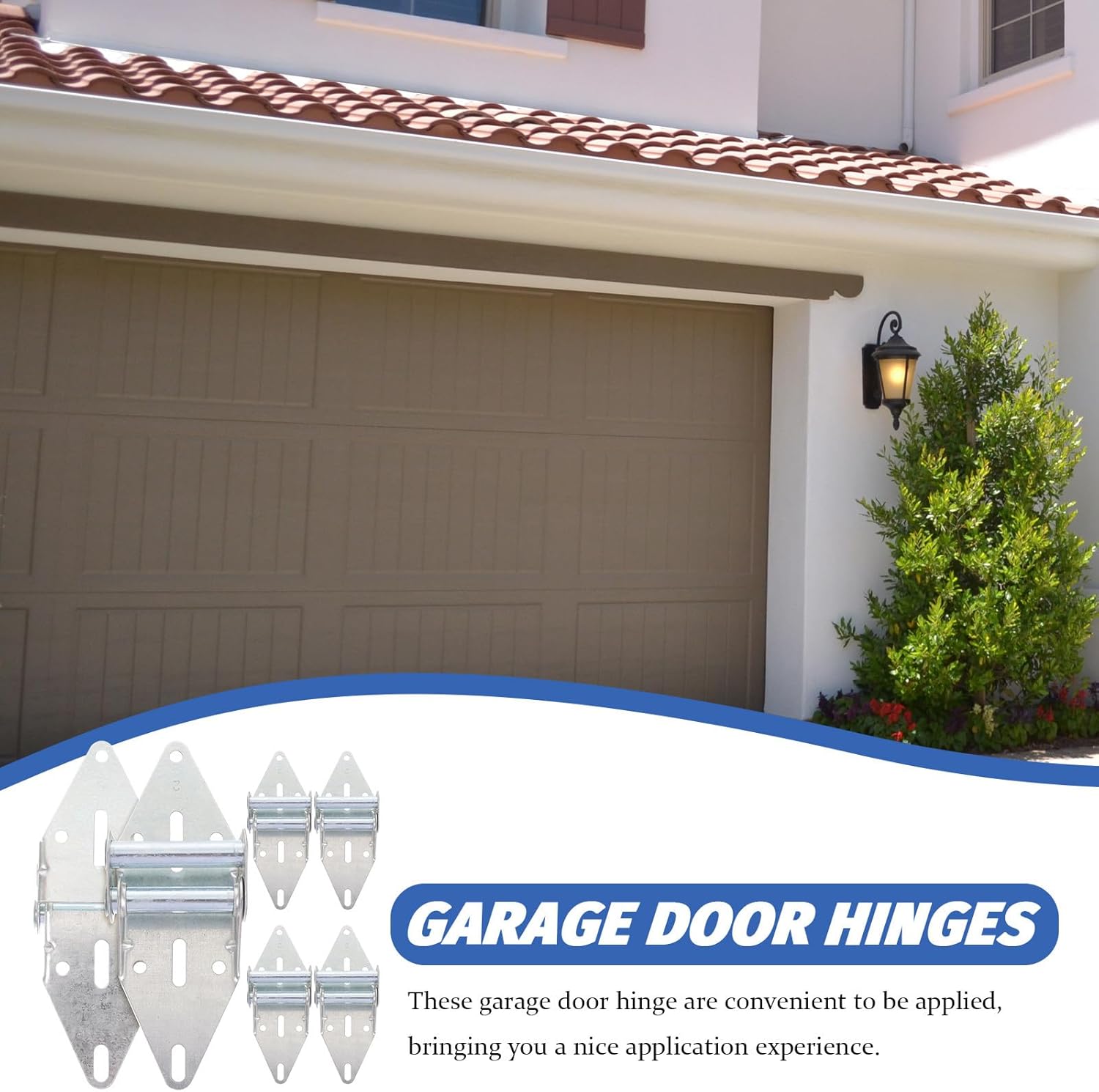 Package Include 6 x garage door hinges Features -Color:Silver -Product Info:Garage door hinges -Size:19.00X7.20X3.80cm/7.47X2.83X1.49in -Material:Iron - Iron garage door hinges are rust-proof, sturdy and durable, a good replacement, fits most residential garage doors hinges. - Heavy duty garage door hinges are suitable for residential garage door and light commercial sectional door commercial door hinges. - Smooth surface garage door hinge, no burrs and not scratching your hands, which ensures the durability garage doors parts. - These garage door hinges are made of iron material, hard and reliable, not easy to break, rust and . - These garage door hinge are convenient to be applied, bringing you a nice application experience heavy duty hinges for metal.Goods Descriptiongarage door parts The garage door hinge are made of iron material, more wear-resistant, durable and has a , easy to install, stable to use.door hinge Suitable for garage door, automatic garage door, engineering garage door, solid wood garage door, etc