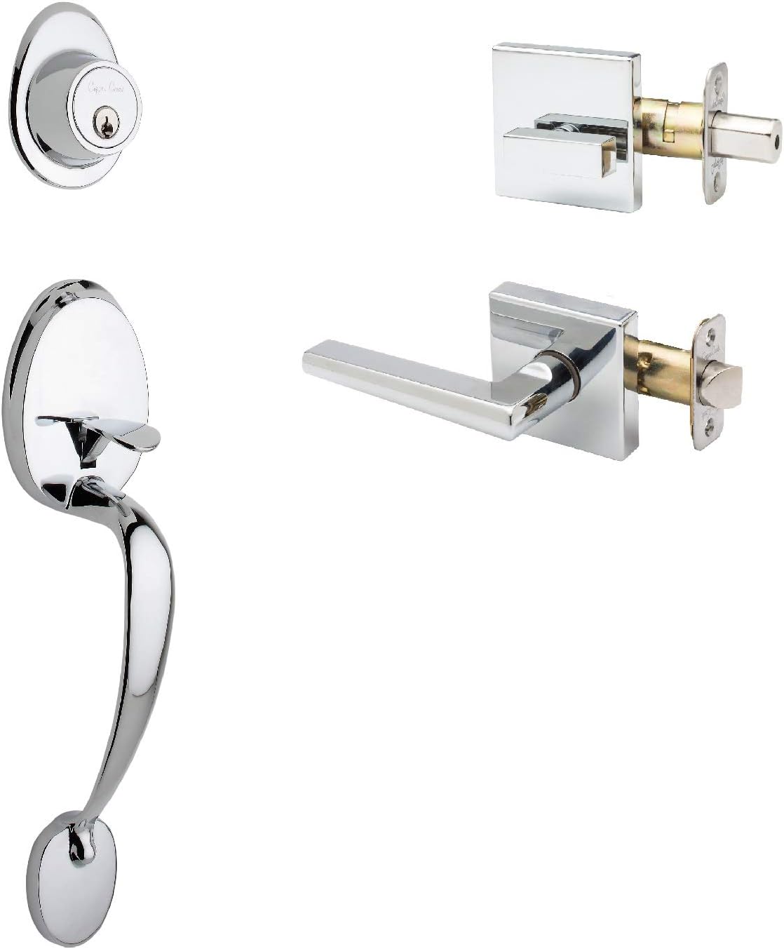 Whether you are remodeling your home or whether you plan to build a new home, this timeless mid-century style front door handle set with contemporary lever interior trim provides the perfect balance between style sophistication and state-of-the-art security. This Black finish is attractive, resistant to smudging, and offers outstanding durability. These locksets are designed to fit most residential doors, and meet the uncompromising grading standards of the ansi for residential and builders hardware.