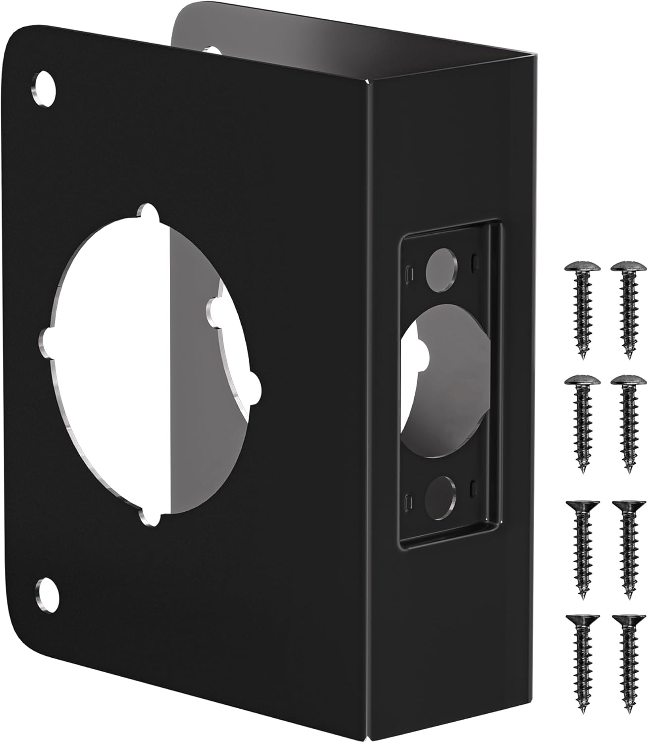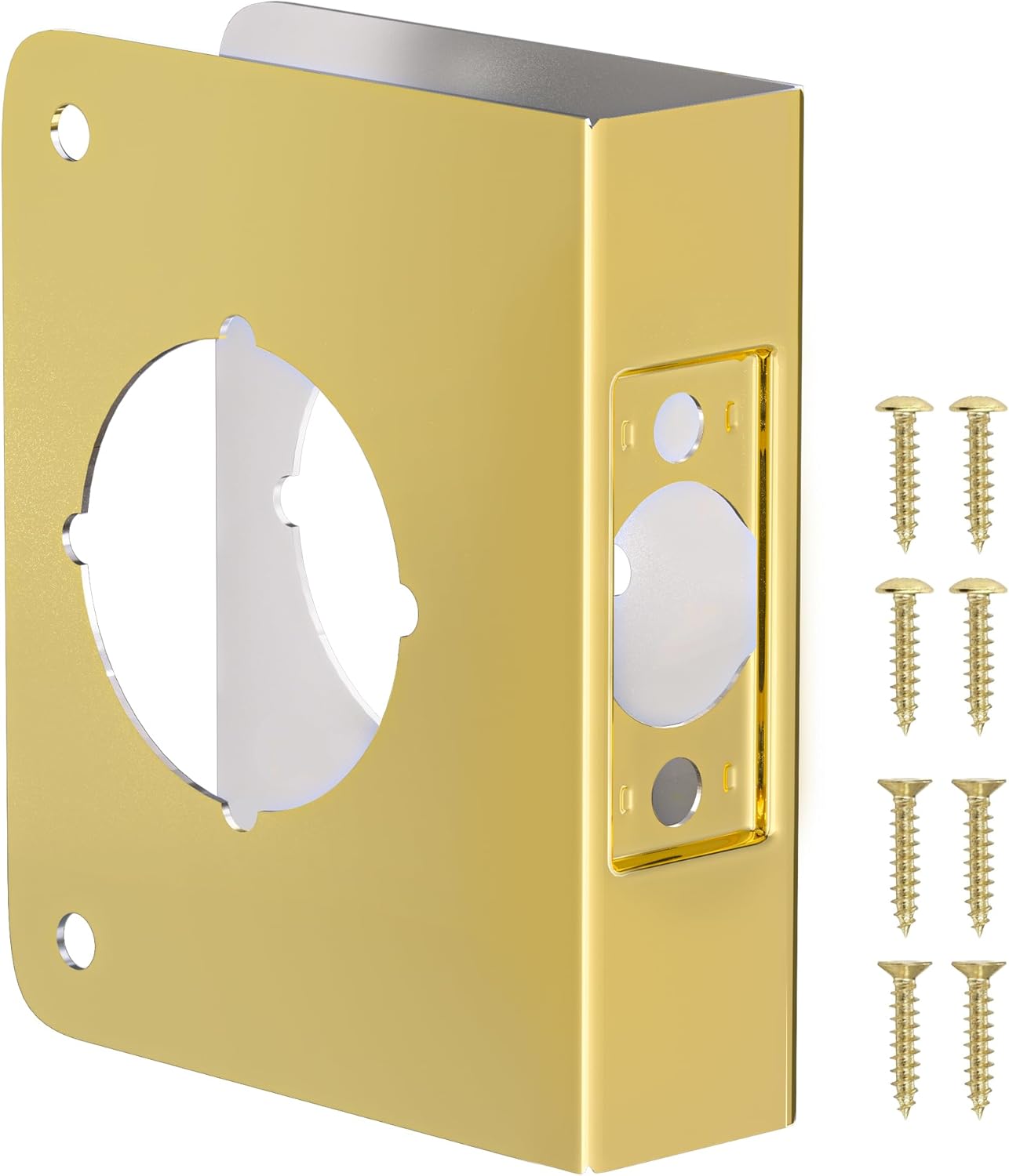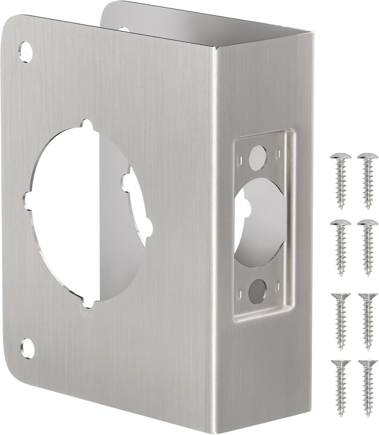 Double Hole Door Knob Reinforcement Plate, Brushed Nickel, Fits 1-3/4" Doors, 2-3/4" Backset, Door Lock and Door Knob Cover Plate, Deadbolt Cover Plate Reinforce and Repair Wood or Metal Doors