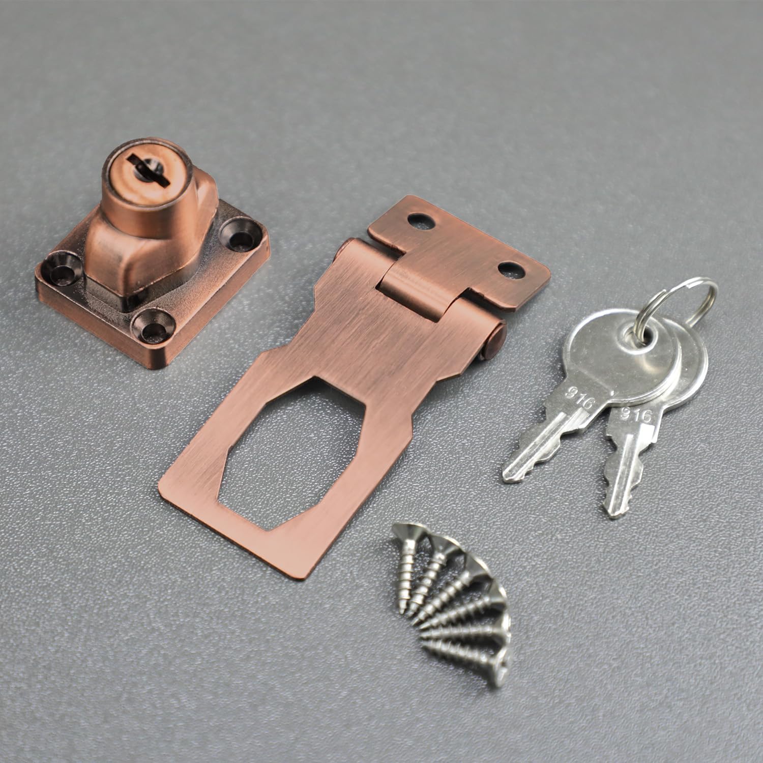 Keyed Hasp Lock, 2.5 Inch Twist Knob Keyed Locking Hasp, Stainless Steel Safety Hasp Latches for Drawer, Cabinets, Doors, Black