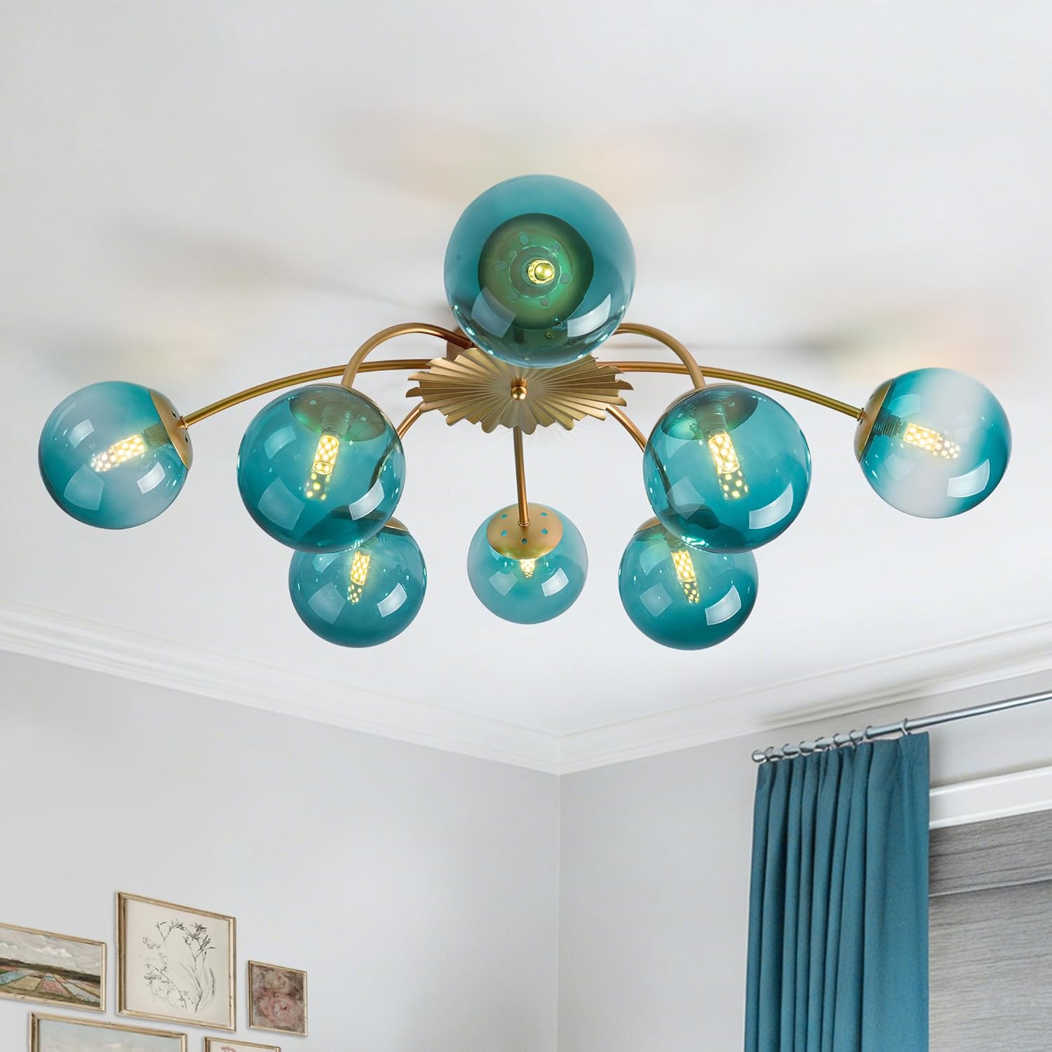 An opulent fusion of classic Sputnik and elegant bubble design, this 12-light/16-Light semi-flush chandelier features gracefully curved arms cascading from the back of a medal-like base to support alluring milky white glass globes, like a beautiful blossom firework. Warm cozy lighting sweeps down to your space when we turn on this glass globe sputnik chandelier, flowing through frosted glass bubbles and the luxe gold frame with elegance. Perfect to add artful charm and sophisticated beauty to your home decor, this 12-ight opal glass bubble chandelier funky chandelier is the best enhancement to a living room, dining room, entryway, bedroom, orlobby.