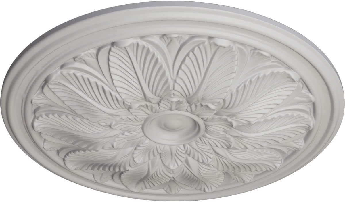 Our ceiling medallion collections are modeled after original historical patterns and designs. Our artisans then hand carve an original piece. Being hand carved each piece is richly detailed with deep relief, sharp lines, and a truly unique touch. That master piece is then used to create a mold master. Once the mold master is created we use our high density urethane foam to form each medallion. The finished look is a beautifully detailed, light weight, solid construction, focal piece. The resemblance to original plaster medallions is achieved only by using our high density urethane and not vacuum formed, "plastic" type medallions. Medallions can be cut using standard woodworking tools to add a hole for electrical or a ceiling fan canopy. Medallions are light weight for easy installation. They are fully primed and ready for your paint. If you have any questions feel free to ask. These are in stock and available for immediate shipment.