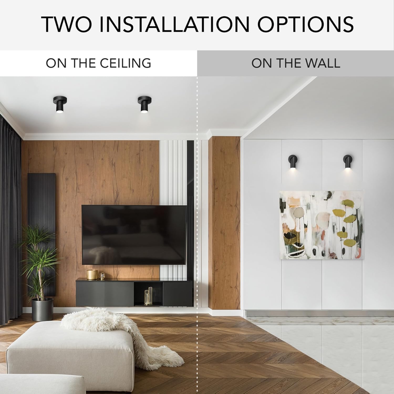 Brighten your home with the Modern LED Spotlight Track Light, a perfect blend of functionality and minimalist design. The convertible swivel head allows for easy wall or ceiling installation, adapting to your unique space. This fixture features a 9W integrated LED, delivering 500 lumens, a 90 CRI, and a color temperature of 3000 kelvin for efficient, bright lighting. Installation is straightforward with all mounting hardware included, making it quick to set up in your kitchen, bedroom, living room, hallway, office, or den. Fully dimmable with a compatible dimmer switch (sold separately), this track light lets you create the perfect ambiance. The versatile placement options with a swivel track head, round canopy, and trendy matte black finish make it a stylish addition to any room.