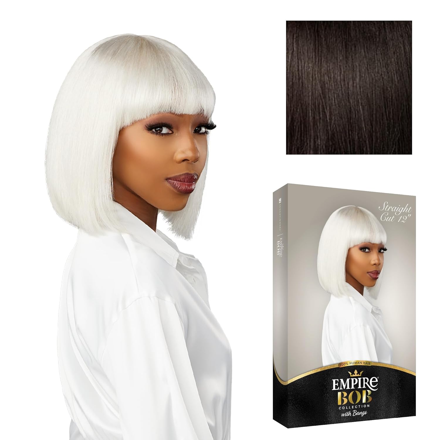 Empire Bob Collection humanhair wigs with bangs by Sensationnel use the original flagship weaving Empire human hair. The curls last a long time and the mesh cap provides extra comfort. Quick on the go pre styled wigs offer a fast human hair wig for everyday wear.