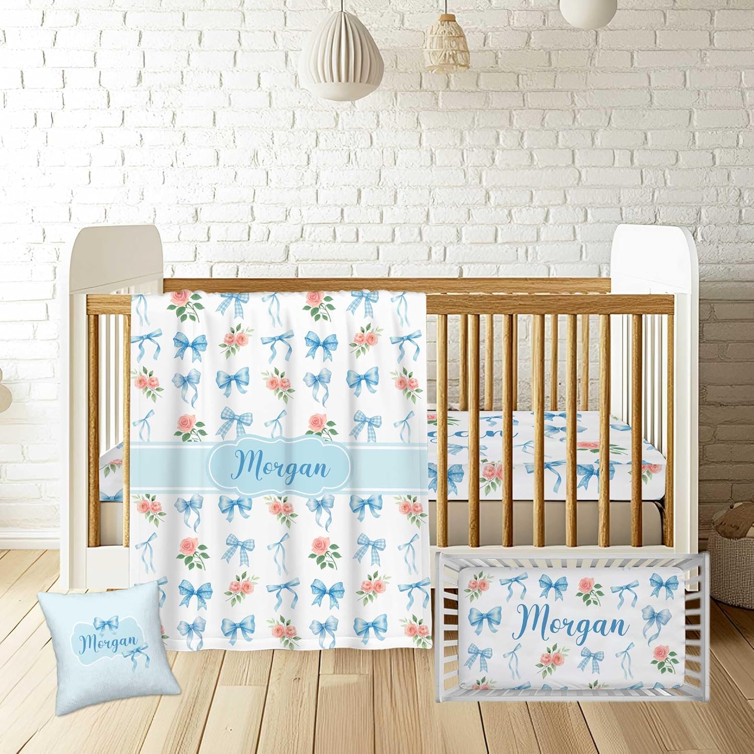 All our bedding pieces are crafted from the soft materials and printed only with safe, water-based permanent inks. You can feel confident knowing that you're purchasing a keepsake that's safe for your baby and will be treasured forever.Custom Gift: This custom name baby girl crib bedding set makes a ideal gift for baby showers or birthdays. Give your little one a dreamy and comfortable nursery with our 3-piece Crib Bedding Set for Baby Girls.