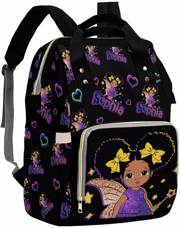 Custom baby bag backpack for your daughter, granddaughter, friend as baby shower gift, birthday gift, mother's day gift. This diaper bag can be easily carried on your wrist, shoulder bag or hang on the stroller. Can act as both a diaper bag or regular backpack, and it is great gift for newborn parent and shower gift.