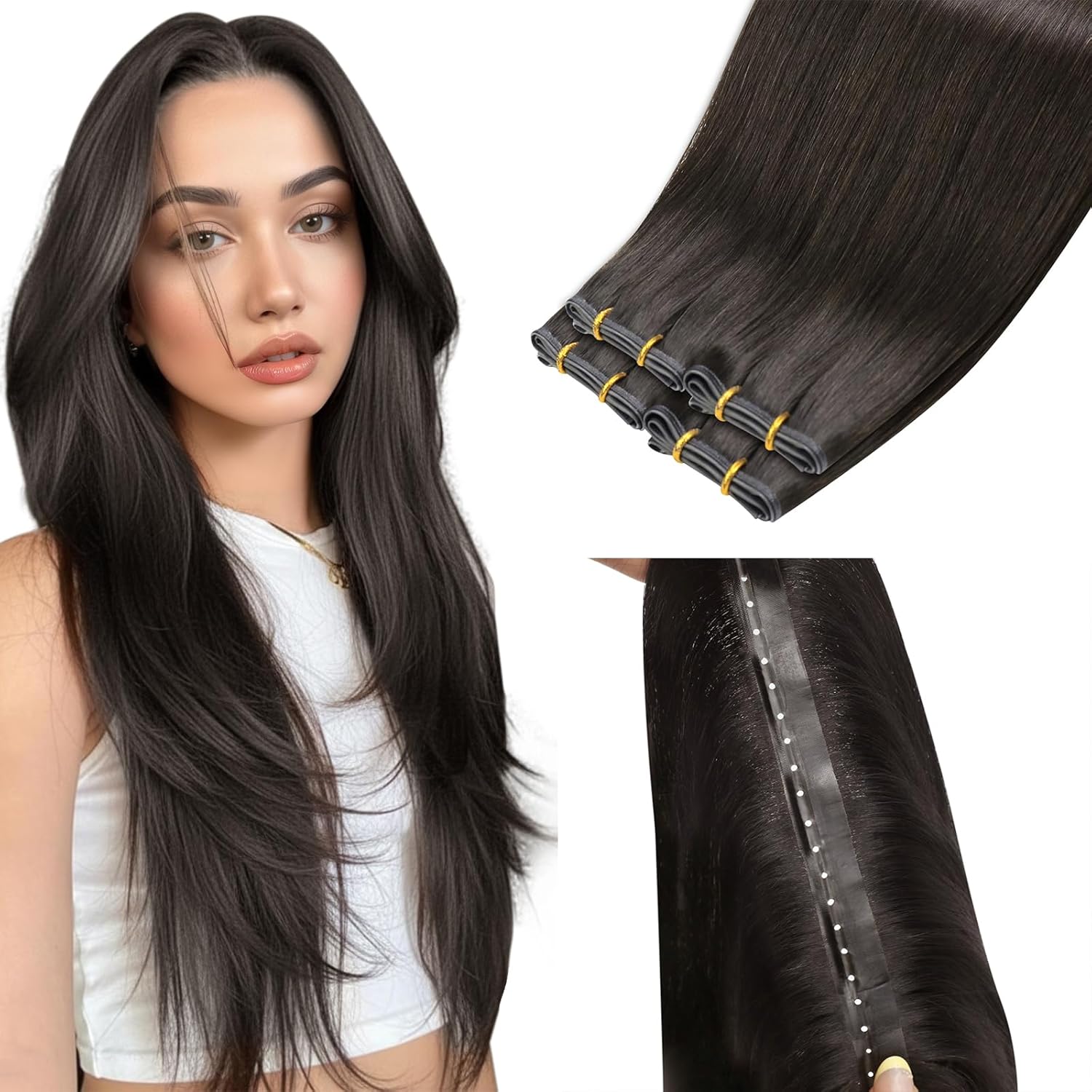 LaaVoo Genius Weft Hair Extensions Human Hair - hand-knotted human hair with precise weight distribution for each length. 16-18 inches (50g): Ultra-thin roots, blends perfectly with short to medium-length hair. 20 inches (60g): Balanced density, natural volume, suitable for chest-length hairstyles without excessive volume. 22-24 inches (80g): Luxurious volume, extended length, lightweight layers, 30% more volume per piece. Why choose LaaVoo Genius Weft Hair extensions? Seamless fit: Thin hand-knotted seams (only 1/3 the thickness of clip-on extensions) evenly distribute weight, preventing pulling or slippage. Can be sewn directly: Pre-stitched reinforced seams allow for direct cutting and sewing, saving 25% salon time. Durable: Hand-knotted weaving technology effectively prevents hair loss. LaaVoo human hair extensions are perfect for gradient lengths (16-24 inches) to create sculpted styles. Invisible beaded hair extensions mimic natural hair growth. They can be styled daily using heating tools or medicated hair loss prevention products.