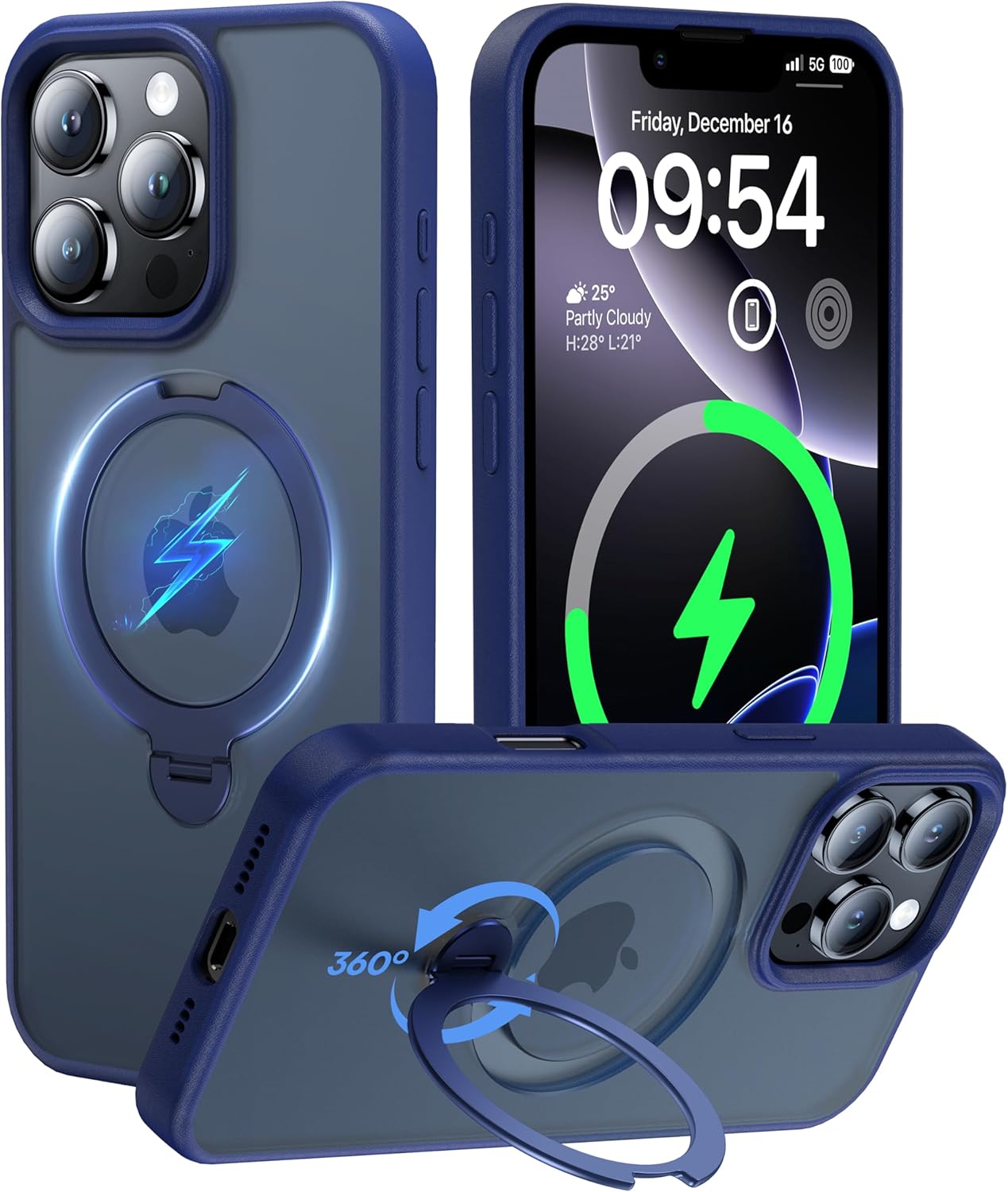 【2025 New Upgrade】360° Spin Titanium Magnetic Stand for iPhone 14 Pro Case [16FT Military Grade Shockproof] [Fit for MagSafe] Matte Translucent Slim Kickstand iPhone 14Pro Phone Cover 6.1'', Green