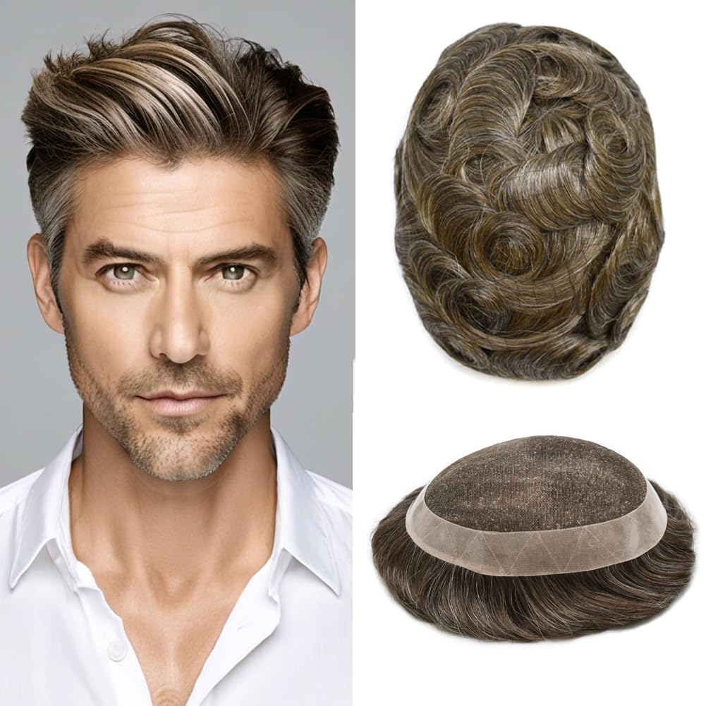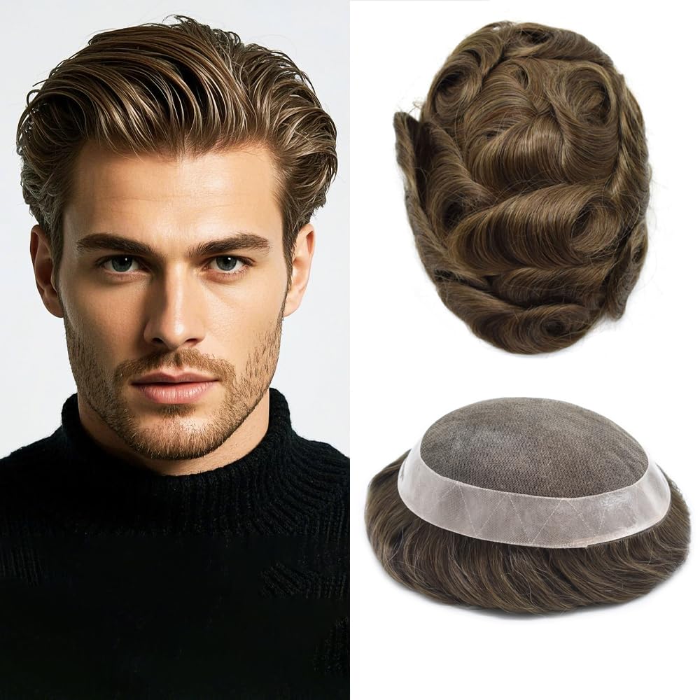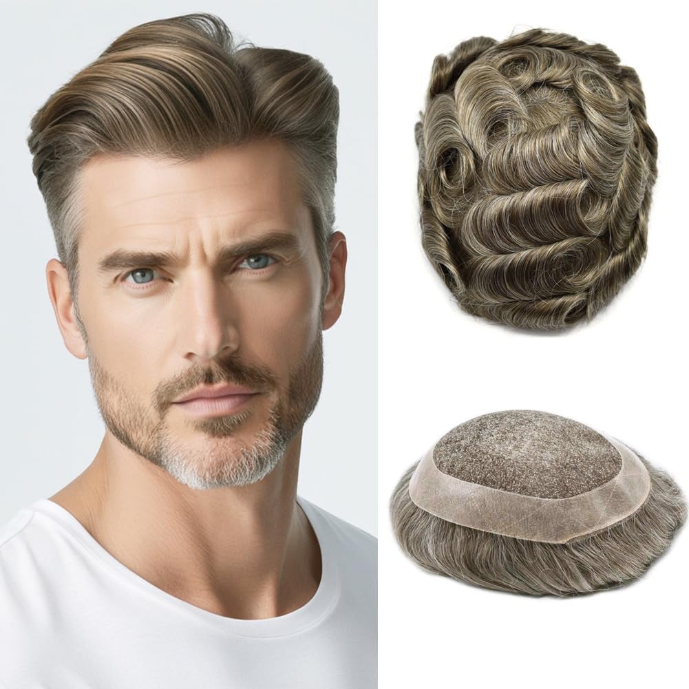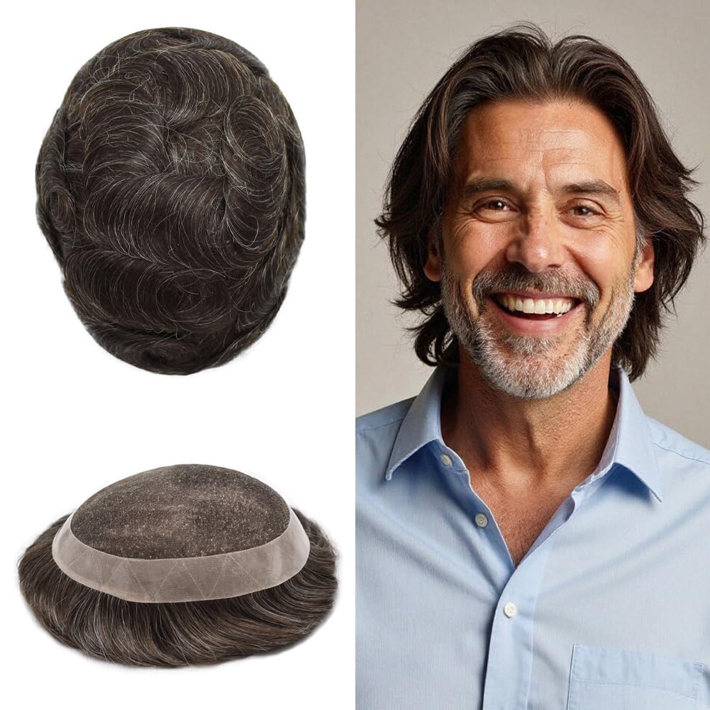Base design:soft French lace center, poly coating around mens toupee hair piece with Natural LookingHair type / material: 100% high quality human hairHair length: 6 inchHair density: 120% medium light to medium lightAvailable basic dimensions: 5"X8", 6"X8", 6"X9", 7"X9", 7"X10", 8"X10",Width (from side to side) x Length (from front to back)Hair Wave: 32mm-Slight WaveHair Style: Free StyleProduction Method: 100% hand madeStock: YesCan Be Customized: Yes