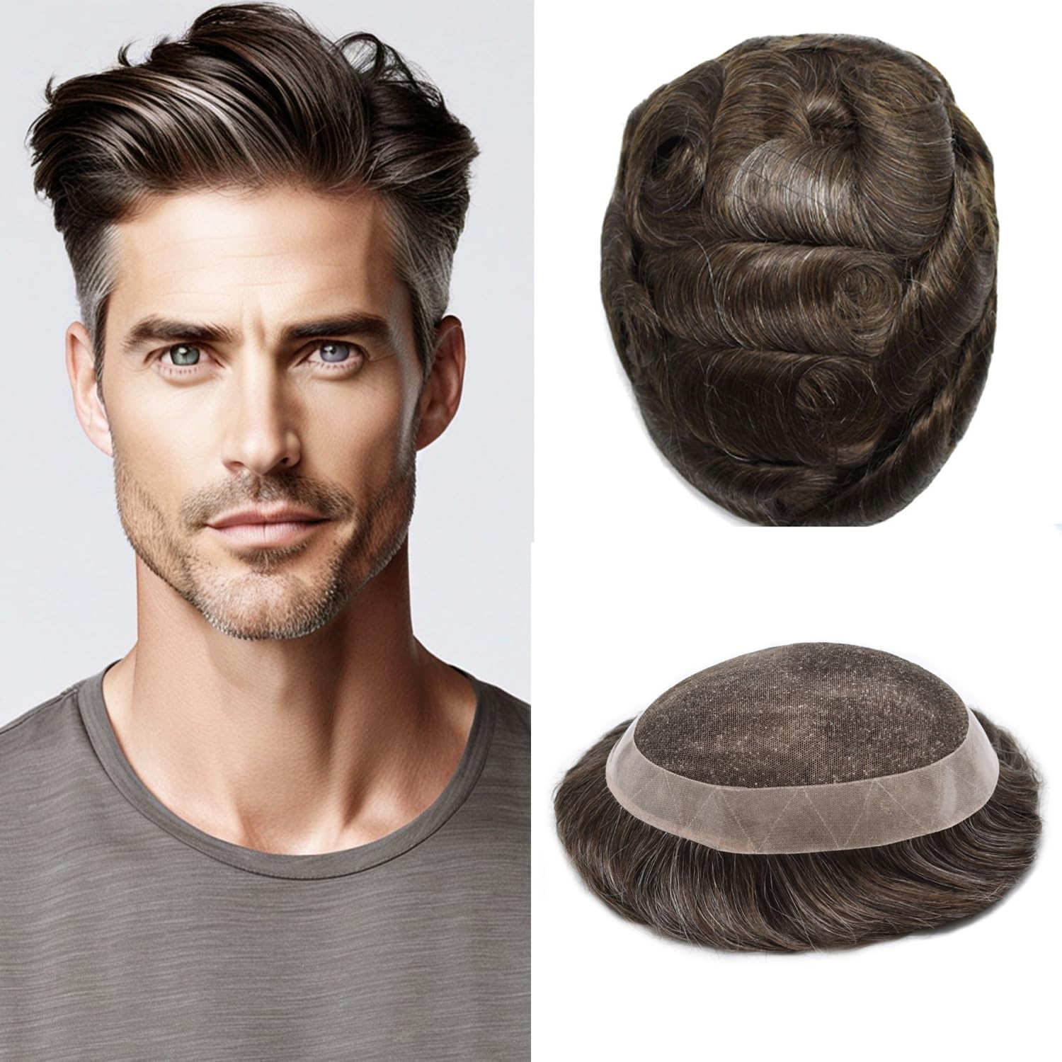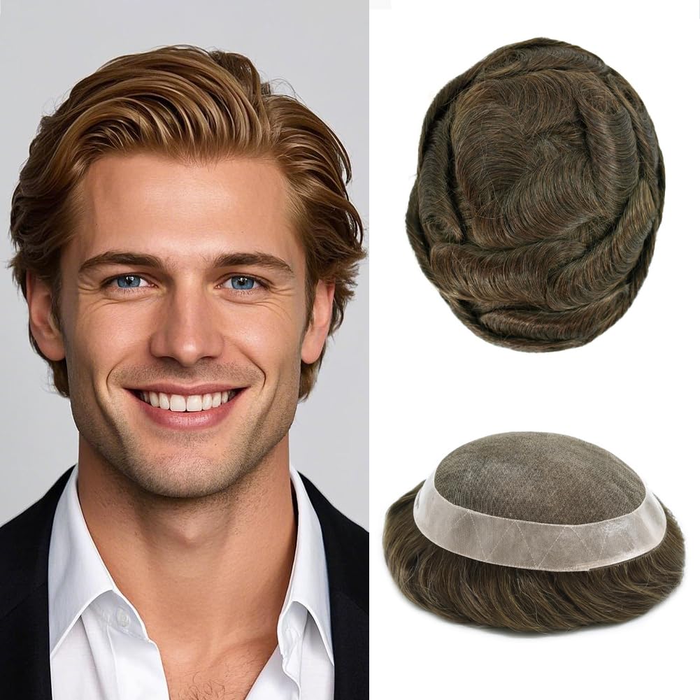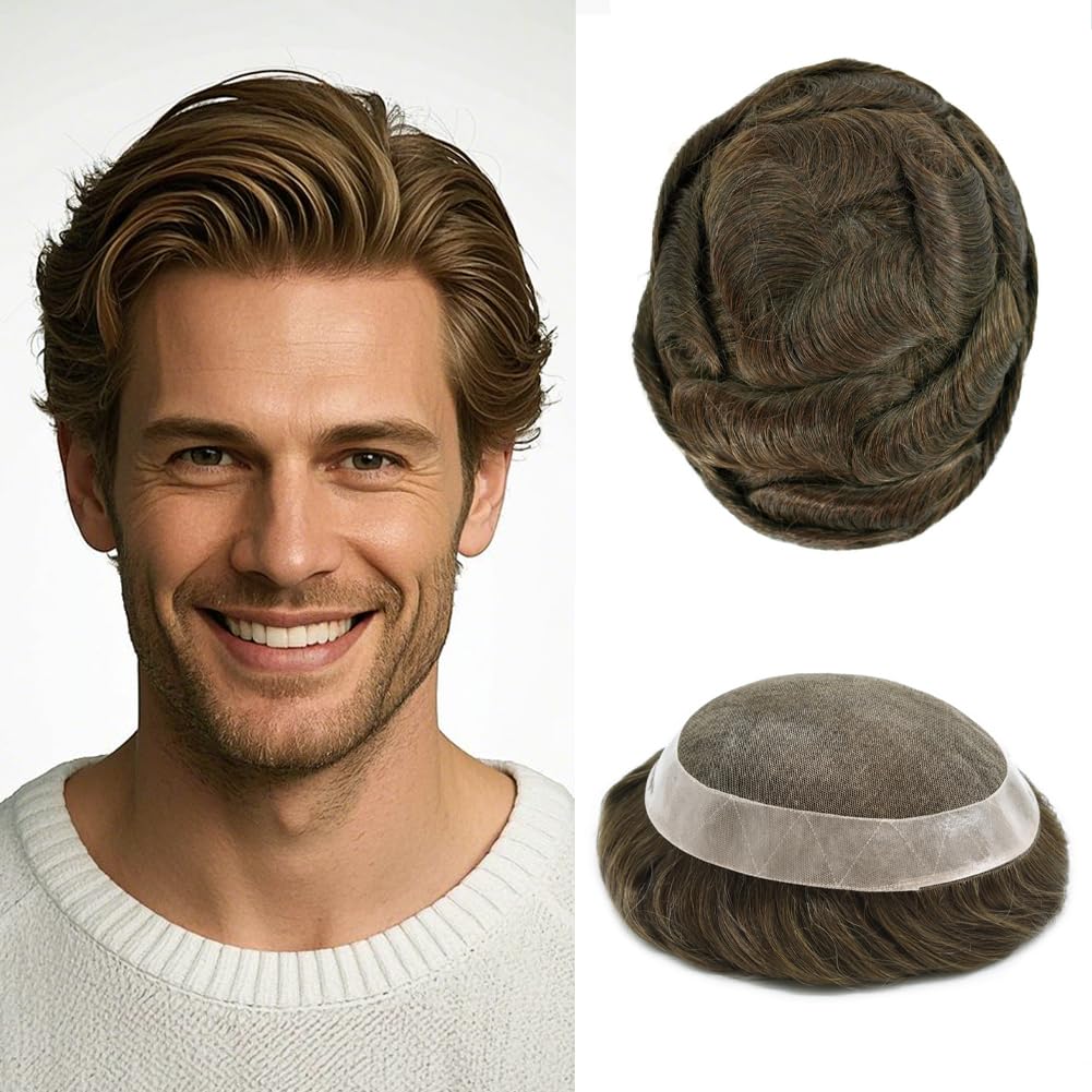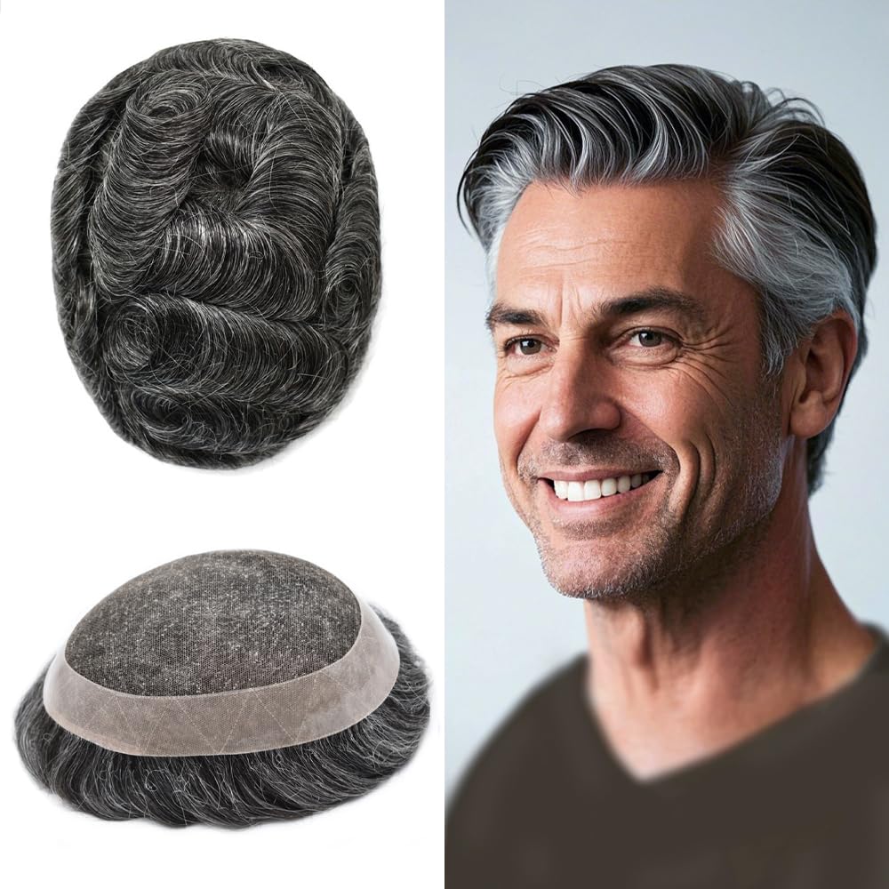 Base design:soft French lace center, poly coating around mens toupee hair piece with Natural LookingHair type / material: 100% high quality human hairHair length: 6 inchHair density: 120% medium light to medium lightAvailable basic dimensions: 5"X8", 6"X8", 6"X9", 7"X9", 7"X10", 8"X10",Width (from side to side) x Length (from front to back)Hair Wave: 32mm-Slight WaveHair Style: Free StyleProduction Method: 100% hand madeStock: YesCan Be Customized: Yes