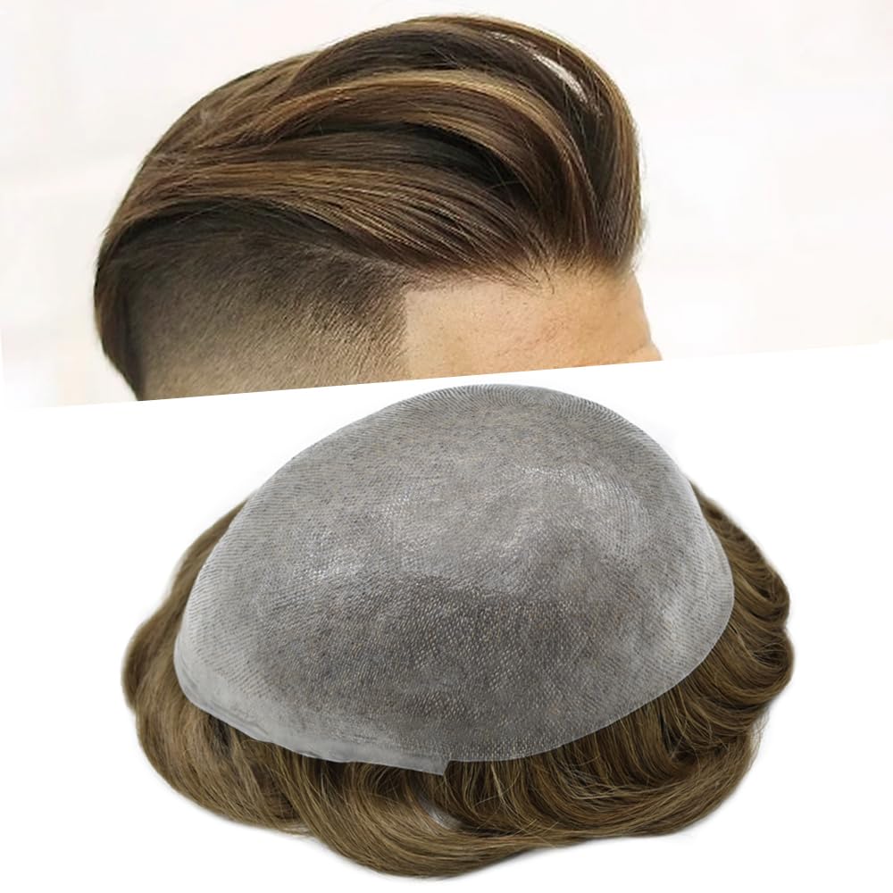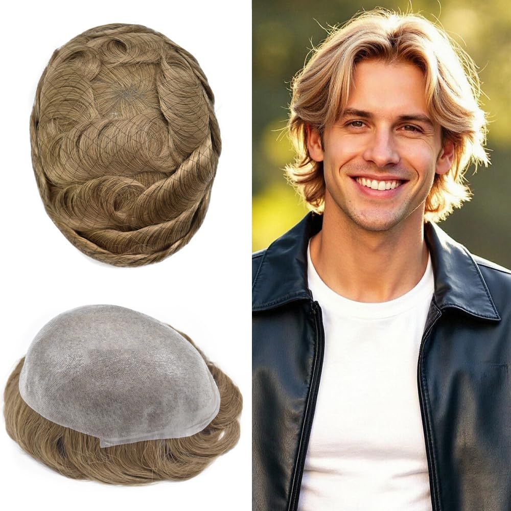 Base design: Full Poly 0.08mm poly thickness. Mens toupee hair system Natural Looking model: AMPU soft enough, comfortable and natural. It is both beautiful and comfortable. hair type / material: 100% high quality human hair It's healthy to wear it without hurting the scalp. slight wavy hair has a natural appearance and is easy to set. Hair length: 6 " hair density: 120% medium light to medium light density Available basic dimensions: 8" X10 " Width (from side to side) x Length (from front to back) curly hair: 32mm, microwave wave hairstyle: free style production method: 100% hand made vivid, natural and real shape. Quality problem return guarantee, no purchase risk inventory: Yes customizable: Yes