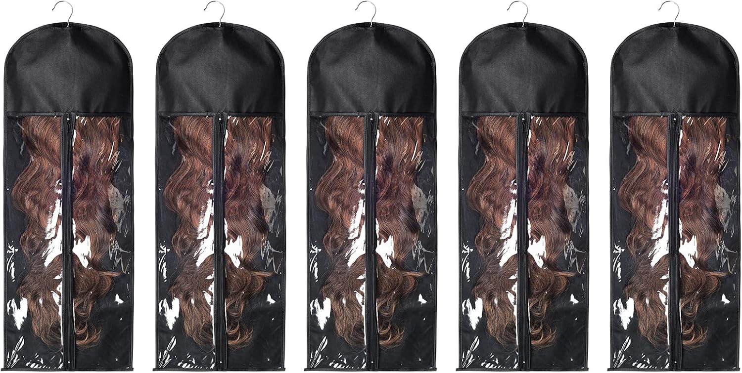 Description: These storage bags are perfect solution to storing and caring for the most hair extensions and wig hairpieces. Transparent window design allow you to clearly see what’s inside, thus saving you the trouble of having to open each one. The strong and sturdy zipper gives you easy access to each bag, and makes sure that no dust, dirt will touch your hair. The hair extension storage bags can store your short,long, straight,wavy , and curly hair extensions. Material: non-woven fabric, plastic Size: Approx. 80x29 cm/31.5x11.4 inch Hanger Size: Approx. 23x16.3cm/9.1x6.4inch Package includes: 5x wig storage bags 5x hangers
