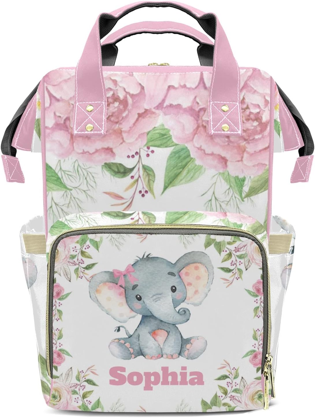 Click on customize,upload your name according to the customization requirements,and you'll get a unique diaper bag just for you! Lovely pattern,not only your baby likes it,you'll love it too!" Size:The size of this diaper bag is 10.8"(L) x 7.8"(W) x 15.7"(H).Material: This Diaper Backpack is made of waterproof nylon.Features:Plenty of room for everything,padded back and adjustable shoulder straps for ultimate comfort and stability so your backpack can fit you perfectly,zippered design with zippers that open and close easily, and straps that can be carried in the back for easy carrying!Easy to tidy up.Multifunctional:This Diaper Backpack can be used as a backpack or handbag.It can be hung in a pram and is very casual and fashionable.Suitable for shopping,traveling,camping,picnic,outdoor activities and other occasions with the baby or Children.WARNING:Over 3 years old.