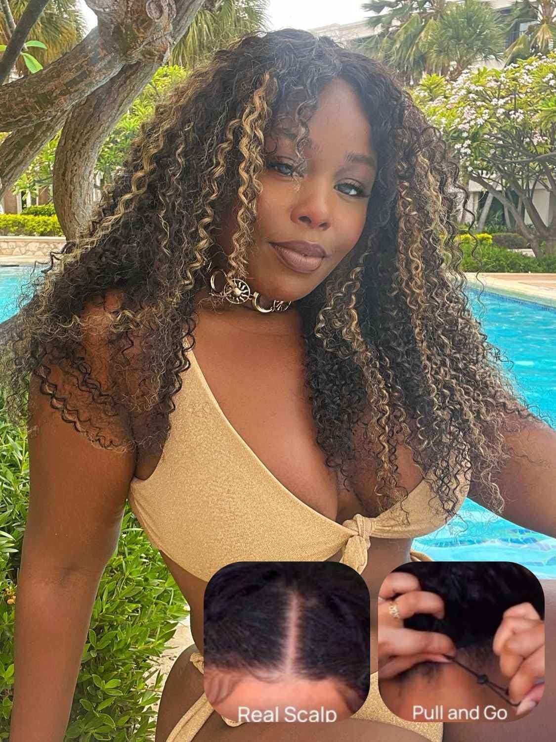 | Color | Golden Brown Highlight | 7x5 Lace Closure Water Wave Wig |