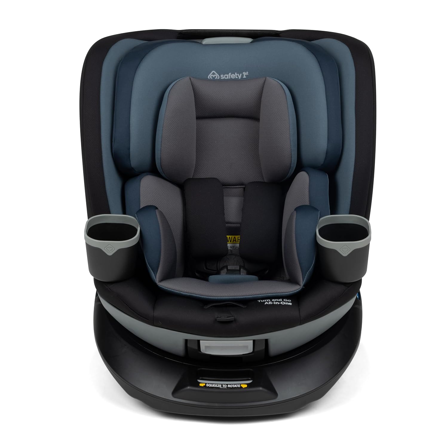 The Turn and Go 360 ST Rotating All-in-One Convertible Car Seat is designed with our innovative SafetySwivel 360° rotational technology, which lets you turn the car seat toward you, bringing you face-to-face with your little one. This rotation makes buckling and transferring your child in and out of the seat easier than ever and puts less strain on your back. Turn and Go 360 fits children from birth to 10 years in 3 modes: rear-facing (5–40 lbs. and 19"–40"), forward-facing (30–65 lbs. and 34.4"–49"), and belt-positioning booster (40–100 lbs. and 43.4"–52"). Our all-in-one car seat solves the number one installation problem that 7 out of 10 parents unknowingly have—loose belt tension. Turn and Go 360 ST features SecureTech, Safety 1st’s red-to-green indicators on the seat’s base that allow you to see when your belt has tension. Installation of the base is the same for all 3 modes of use, alleviating the need to re-install the base as your child grows. Whether you’re bringing home your new arrival or taking your big kid to school, you’ll travel in confidence through all their stages. The Turn and Go 360 ST meets or exceeds all federal safety standards and is National Highway Traffic Safety Administration (NHTSA) compliant. The attached connection cord ensures that the base and seat must be used together when installed. Actual fit may vary. Not all children will comfortably fit in the seat for the full weight and height ranges listed.