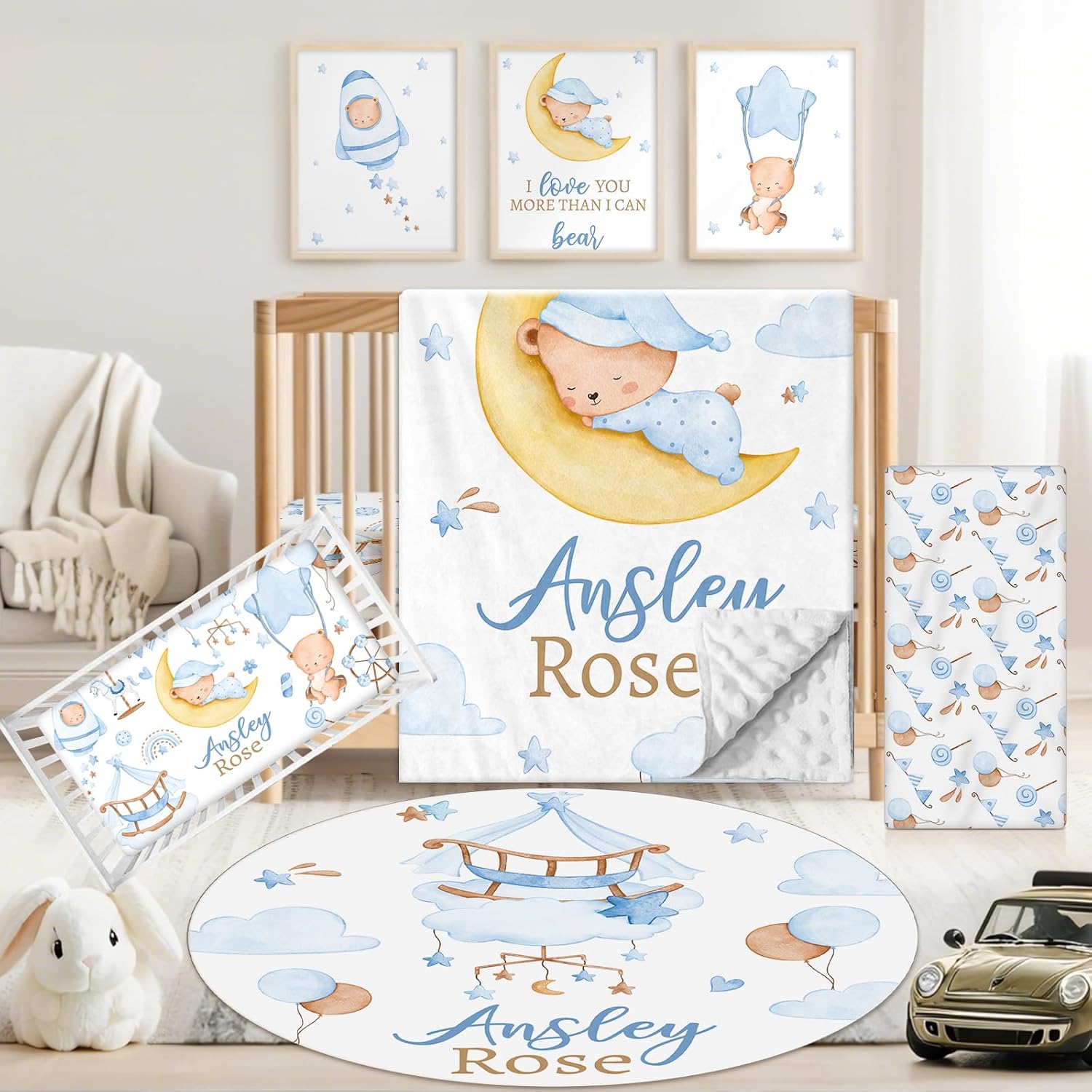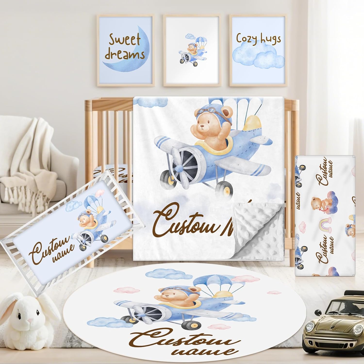 | Included Components | Baby Rug, Changing Pad Cover, Crib Fitted Sheet, Dotted Backing Blanket, Wall Art |