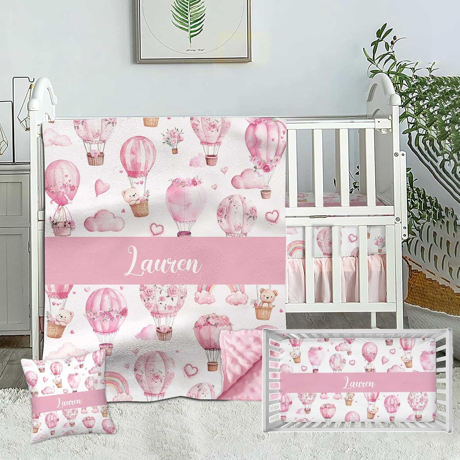 All our bedding pieces are crafted from the soft materials and printed only with safe, water-based permanent inks. You can feel confident knowing that you're purchasing a keepsake that's safe for your baby and will be treasured forever.Custom Gift: This custom name baby girl crib bedding set makes a ideal gift for baby showers or birthdays. Give your little one a dreamy and comfortable nursery with our 3-piece Crib Bedding Set for Baby Girls.