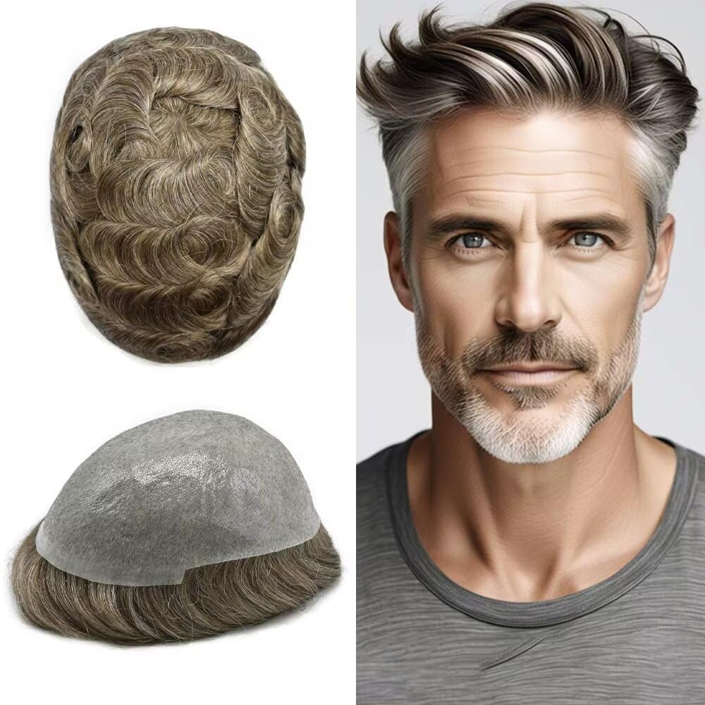 ๐.๐๐๐ฆ๐ฆ ๐๐ง๐ฏ๐ข๐ฌ๐ข๐๐ฅ๐ ๐๐ก?๐ง ๐๐จ๐ฅ๐ฒ ๐๐๐ง๐ฌ ๐๐จ๐ฎ๐ฉ๐๐ ๐๐๐ญ๐ฎ๐ซ๐๐ฅ ๐๐จ๐จ๐ค๐ข๐ง๐ ๏ผ๐๐จ๐ญ-๐๐๐ฅ๐ฅ๐ข๐ง๐ ๏ผ๏ผ MODEL NAME:Ultra Thin Skin Mens Toupee BASE DESIGN:0.04-0.06mm Ultra Thin Poly BASE SIZE:8"X10"=Width๏ผside to side๏ผX Length๏ผfront to back๏ผ MAIN HAIR MATERIAL:Indian Remy Human Hair Piece GRAY HAIR MATERIAL:Synthetic Fiber HAIR LENGTH:6 Inch Short Hair> HAIR WAVE:32mm Natural Wave HAIR DENSITY: 100% Light to Medium Light Density HAIR COLOR:More Than 90 Colors Are Avaiable HAIR STYLE: Free Style MADE METHOD:100% Hand Tied STOCK: Yes CAN BE CUSTOMZID:Yes Warm Tips 1. It is easy to apply and easy to Clean.Although super thin skin is comfortable and well liked by many, it is also fragile and may not last as long as PAPY thin skin which is similar but more durable. Average time for super thin skin is about a month whereas PAPY should last about 3 months.It is important that one visits with a specialist that can provide you with excellent service and will teach you how to maintain your unit properly. 2.Color may be a little different due to the color calibration of your computer monitor or cell phone brightness settings. 3. We have dyed the hair and fixed the color, it could not be bleached to lighter one.
