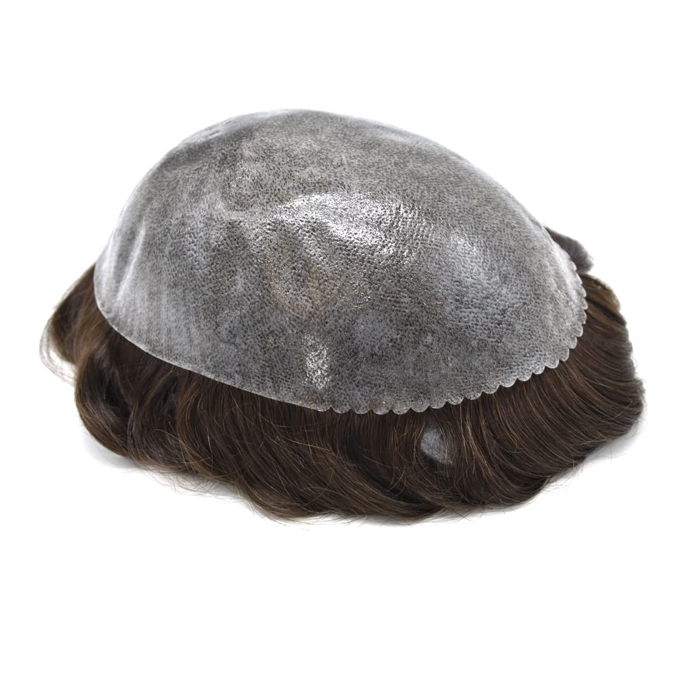 Full Poly All PU Injection Toupee for Men Hairpiece Base Design: Thin Skin PU INJECTION. 0.1-0.12mm Skin Thickness. Can be cut down to any size. Comfortable. Easy to Wear. Natural.Base Size: 8”(Width)X10”(Length) Main Hair Material: Indian Human HairGrey Hair Type: Synthetic Grey Hair Length: 6 Inch Short Hair Available Hair Colors: 1# Jet Black, 1B# Off Black,2# Darkest Brown....50 Colors Are available. pls message your color Hair Wave: 32mm-Slight Wavy Hair Style: Free Style Made Method: Hand Tied Warm Tips:1. Color may be a little different due to the color calibration of your computer monitor or cell phone brightness settings.2. We have dyed the hair and fixed the color, it could not be bleached to lighter one.