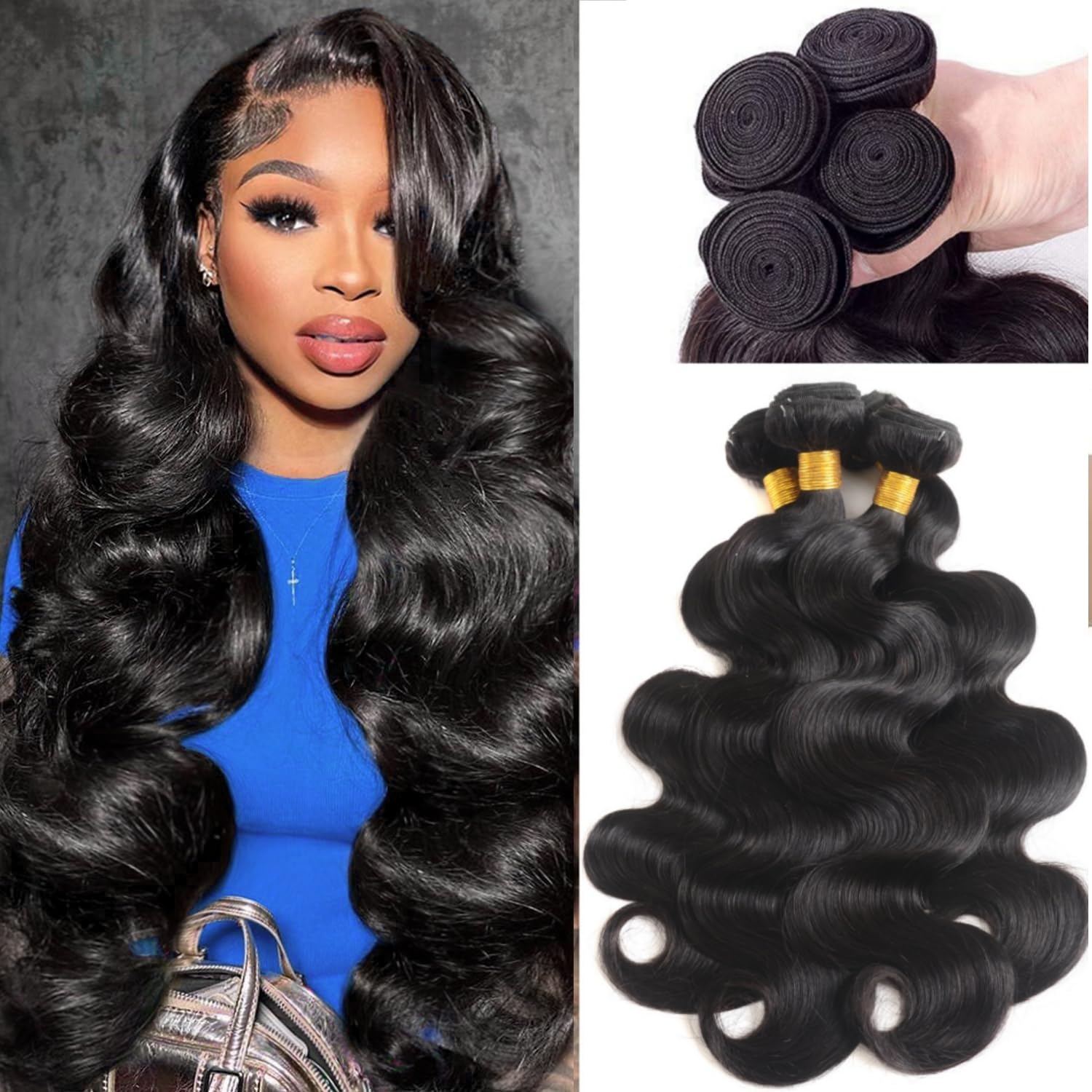 Hair Title: Brazilian body Wave Human Hair BundlesHair Included: 3 Bundles of body Hair with 4x4 closureAbout Brazilian Hair Body Wave 3 Bundles ✈1.Hair Length: bundles:10-30inch ✈2.Hair Weight: 95-100g/bundle ✈3.Hair Color: Natural Black Color 1b✈4.Hair Texture: Brazilian Body Wave Hair✈5.Hair Material: 100% Unprocessed Brazilian Human Hair, Body Wave Hair Bundles✈6.Hair Weft: Strong Double Machine Weft, Exquisite Top Weft, Tight and Neat✈7.Hair Quality: Can be Dyed, Bleached, Straightened, No Tangles, Minimum Shedding, Very Soft.✈8.Hair Grade: 9A Grade Brazilian Human HairAbout Brazilian Hair Body Wave 4x4 closure✈1.Lace Closure: body Wave Closure✈2.Hair Parting: free Part✈3.Lace Size: 4x4 Inch✈4.Lace Color: Middle Brown✈5.Closure Base: Swiss Lace ✈6.Closure Density: 150% Hand-Tied ✈7.Closure Hairline: Pre plucked with Baby HairFAQ About 100% Human HairQ1: Is this 100% Human Hair?A1: Yes, Sure. this hair is 100% human hair, you can do a burning test, human hair burns with white smoke, turn to ash .Q2: How to avoid hair tangling or shedding?A2: Please wash your hair with high quality shampoo and conditioner; Please comb body wave hair gently with wide-tooth comb daily; Please Always consult your stylist before attempting any styling techniques you are unsure.Q3: How do i measure the hair?A3: The way we measure the hair is to make it stretch straight, Instead of measuring it directly. Especially for body hair, It should be stretched to straight when you measure the length