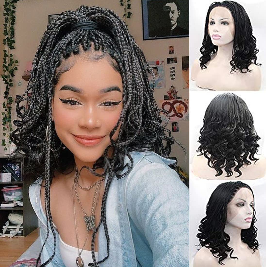 Material: 100% Kanekalon High Quality Fiber Synthetic Nylon Hair Color: 613 Blonde Mixed Length: 16 inches , Gives You the Multiple Choices to Change Your Hair Style Type: Top Quality Synthetic Fiber 100% Premium Synthetic Wig shape: Straight Braided Curly Wavy Wigs lifetime: 1 year Heat Resistant Temperature: 180c/350f Cap Size: Circumference of the cap is 21.5-23” Advantage: Natural Shining, Smooth , Bouncy and Soft, Very easy to Install Function: Our braided wigs are well designed and popular for African women to pursit beauty and trendy. Instant and Fashionable styles Perfect for daily use, Halloween, concerts, gifts, theme parties, wedding, dating ,cosplay costume etc. 1-Change of look. Change of mood Gives you a chance to try more hairstyles in the most effective way. Surprise your love ones with a gorgeous fresh look. 2-Magical Time Saver When others are spending hours crocheting the hair extensions by themselves, you can simply put the wig on and get a beautiful braiding hair look in few minutes! 3-Lace Front Wig with Baby Hair We adjust the lace space depending on different styles to make the look as realistic as possible and the wig more affordable at the same time. The wig has got baby hair at the front back so as to give a more natural hairline. Warm Tips All synthetic hair wigs be happened to minimum shedding and tangling due to dryness, oil&dirt build-up, salt water and combing, which is normal. Wash your braids wig in either lukewarm or cold water with mild shampoo, because braided wigs are synthetic, washing it with hot water will damage the fibers and your braids will fall out and easy tangled. Make sure to wash and condition your hair at least once a week, and if possible, twice a week would be better.