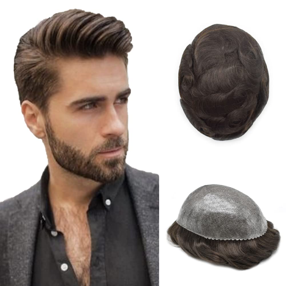 • Quality Toupee Hair: High Quality 10A Grade Soft Human Hair, Ero-touch Human Hair, 100% Remy Virgin human hair toupee for men, soft and smooth, slight wave, hair system for men natural looking, mens hair piece easy to trim and style. 100% hand-tied, tangle free, no shedding. We use all high-quality real Human hair. Mens hairpieces and toupees are high-end product and gift which perfectly solves the troubles caused by men's hair loss.