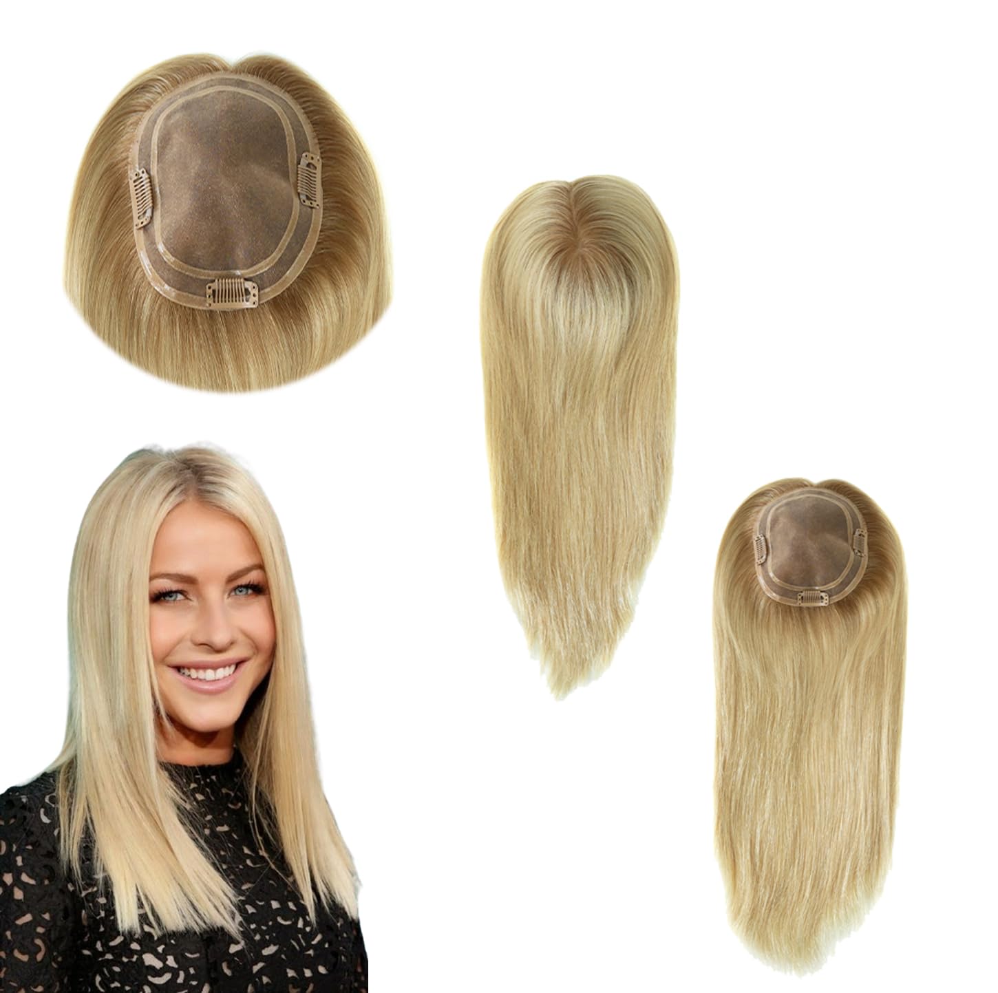 Base Design: Fine Mono in center, poly coating in perimeter. Undervents in front&temples,clips in sides&back Base Size: WXL=5.5''x6'' Hair Density: Medium light to Medium, 120%. Hairstyle: Freestyle. Hair Length: 20'', 50cm.Hair Wave: Natural Straight.Hair Type: European Remy Hair. Hair Color: #613, blonde. The expected using time: 3-6 months with good care.About us: We own 2 factories and produce 20000+ hair systems every month. We also do wholesale business and supply many well-known salons worldwide.custom orders are available, any deisgns and materials are available. Feel free to contact us if you have any quesions.