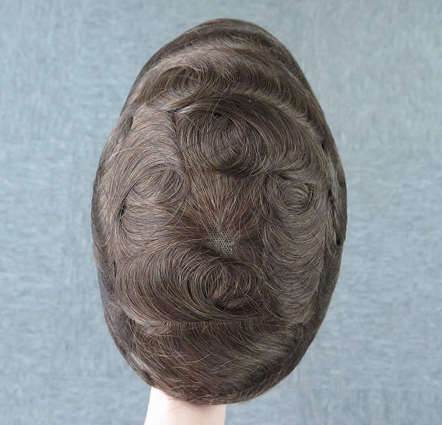 Base Design: Full soft Swiss Lace.Base Size: WXL=8''x10", can be cut down to accommodate any size.Hair Type: 100% HUMAN HAIR. Hair Length: Standard 6". Wave Pattern: 30mm slight wave Hair Density:Light to Medium Light, 90% Hair Style:Free Style. Colour: #1B65, light black with 65% grey. Contour Shape:"A" Contour Expected lifespan: 2-3 monthsAbout us: We own the factory and produce 20000+hair systems every month, we also do wholesale business. We supply many well-known salons worldwide with our hair systems.We can make custom orders, any deisgns and materials are available.