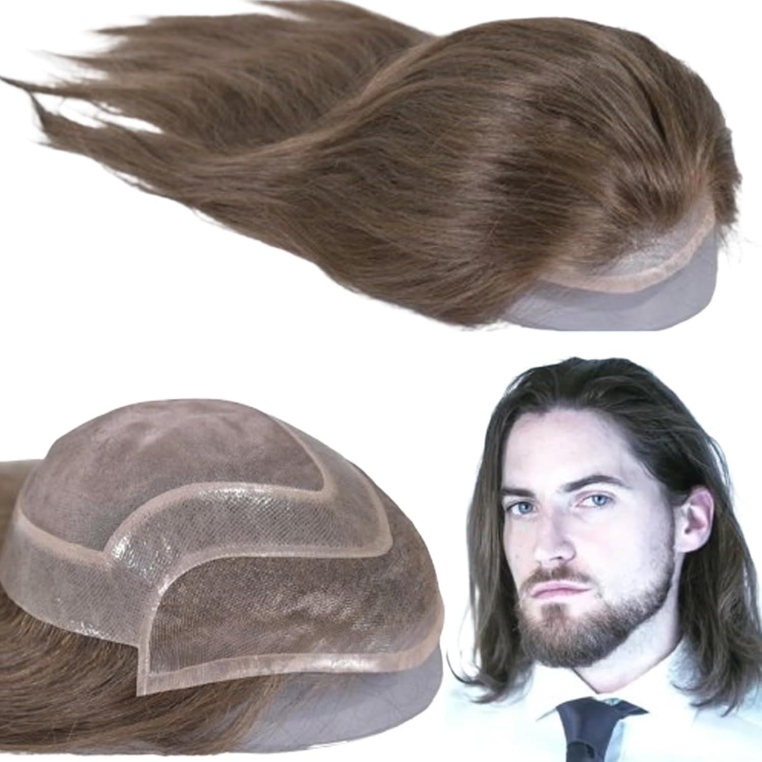 Thank you for shopping from Voloria's Store,we aim provide you with best quality product and service,should you have any problem just come to us freely,you will always be satisfied! 1.HAIR MATERIAL:100% unprocessed virgin human hair. 2.HAIR TYPE:100% European virgin human Hair piece toupee for men. 3.HAIR LENGTH:12inch long hair,suitable for most hair lengths,you can cut your preferred hair style without worrying about the hair length. 4.HAIR TEXTURE:Silk straight,you can use the hair straightener or curling iron do any style on it,natural looking and soft touch. 5.HAIR STYLE:Free style,and the hair look just like growing from your scalp. 6.HAIR COLOR:Color like the picture show,if you like other color we can customize for you for free. 7.HAIR DENSITY:130% medium light density,which is the most common and natural density for men.If you think it's very thicker,you can cut it by yourself or let your hairstylist help you style it. 8.BASE SIZE:Default cap size of this hairpiece is 8"X10", which is usually big enough for most head sizes,however it can be cut to a smaller size.If you prefer smaller size,you need to cut it by yourself or your hair dresser. 9.FEATURE:Lightly bleached knots all over make this hair replacement system very naturl,at the same time,keep some durability,when you wear it,nobody will realise you are wearing a toupee. 10.CUSETOMIZE:Our store accept customize toupee,manufacture with more than 10 years experience.Large stock for your urgent demand. 11.PACKING: 1pc/color box,elegant packing always protect the item well.