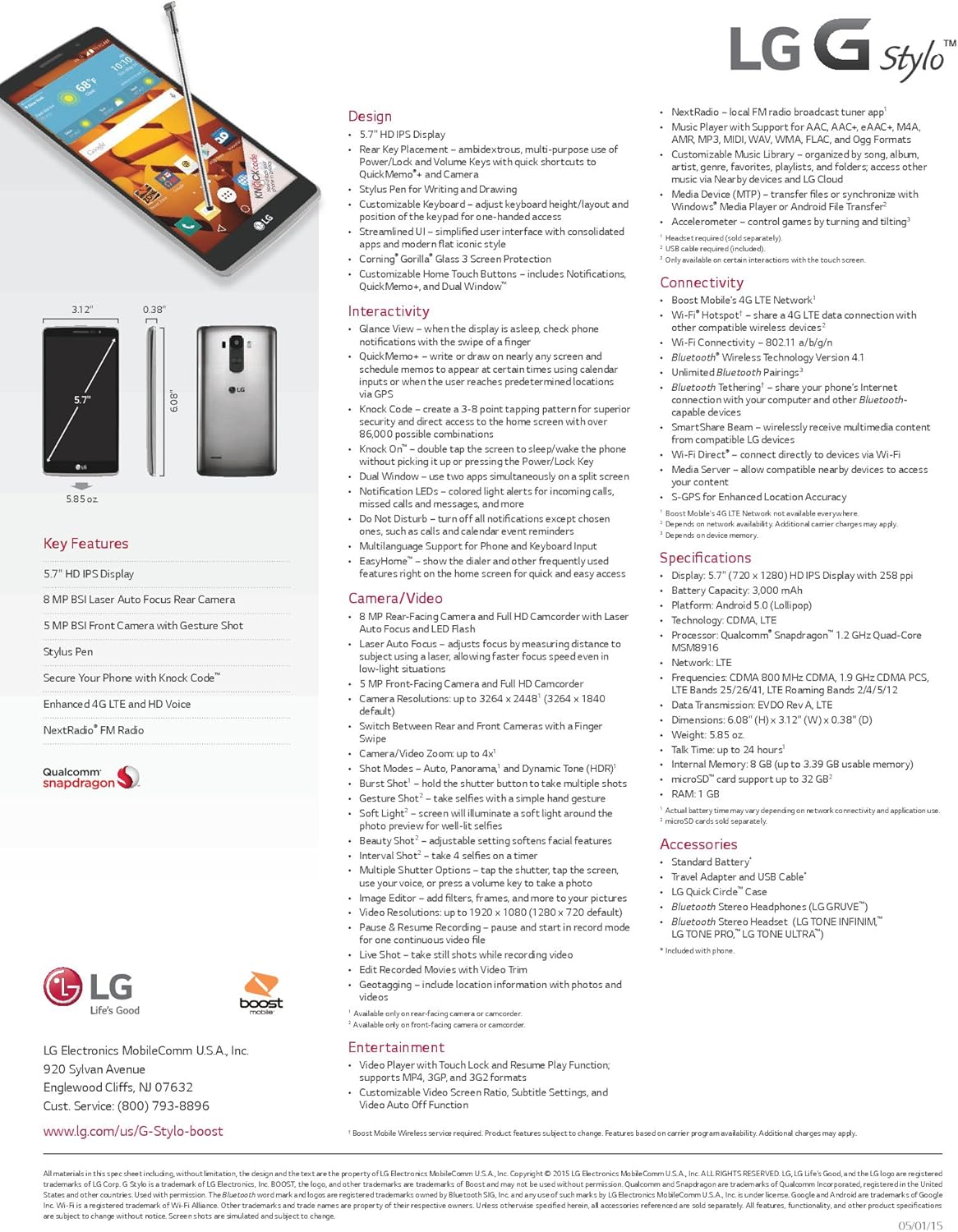 LG STYLOS GRAY Android Cell Phone Android 5.0 (Lollipop) 3G/4G LTE/Enhanced LTE† 1.2GHz Quad-Core Processor Mobile Hotspot Capable