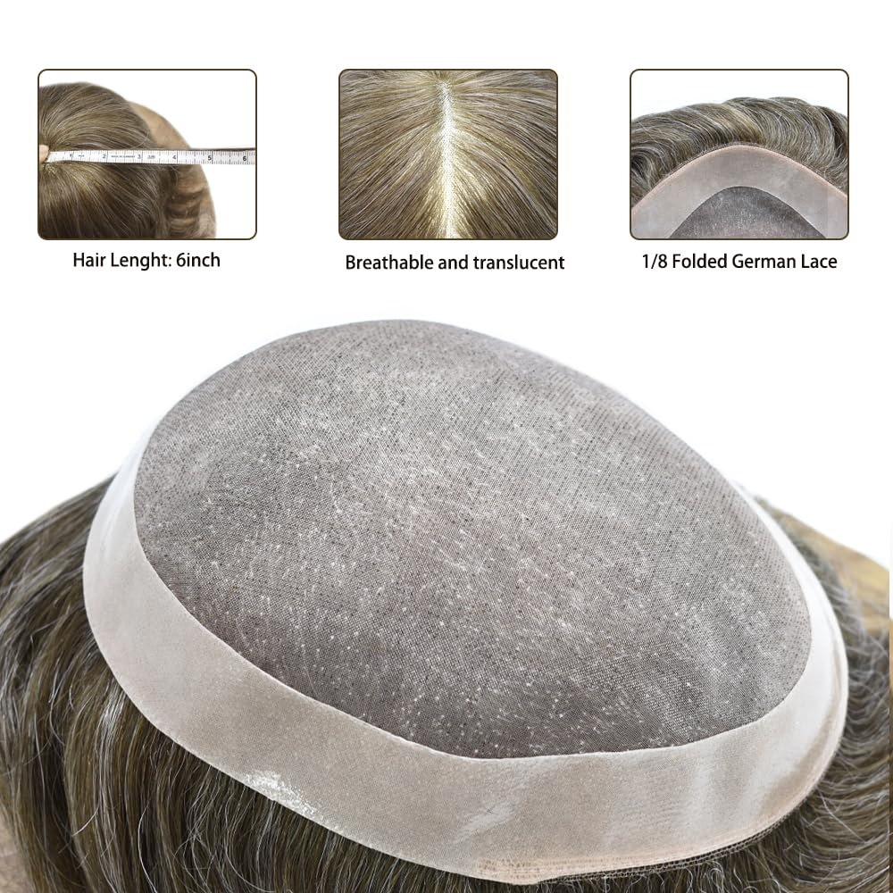 Base Design:Fine Mono in Center, 1" Poly Coating Around Perimeter, 1/8" Folded German Lace in Front. Easy to Wear. Model Number:D7-3 Main Hair Material:Indian Remy Hair Gray Hair Type:Synthetic Fiber Hair Length:6 Inch Short Hair Available Base Sizes:5"X7", 6"X8", 6"X9", 7"X9", 7"X10", 8"X10" Available Hair Colors: Black, Brown, Blonde, Ash, Black with Gray, Brown with Gray, Blonde with Gray Hair Density:120% Medium Light to Medium Hair Wave:32mm-Slight Wavy Hair Style:Free Style Made Method:Hand Tie Stock:Yes Can Be Customized: Yes Warm Tips: 1. Color may be a little different due to the color calibration of your computer monitor or cell phone brightness settings. 2. We aim to make all the customers satisfied. We cherish the cooperation with everyone.