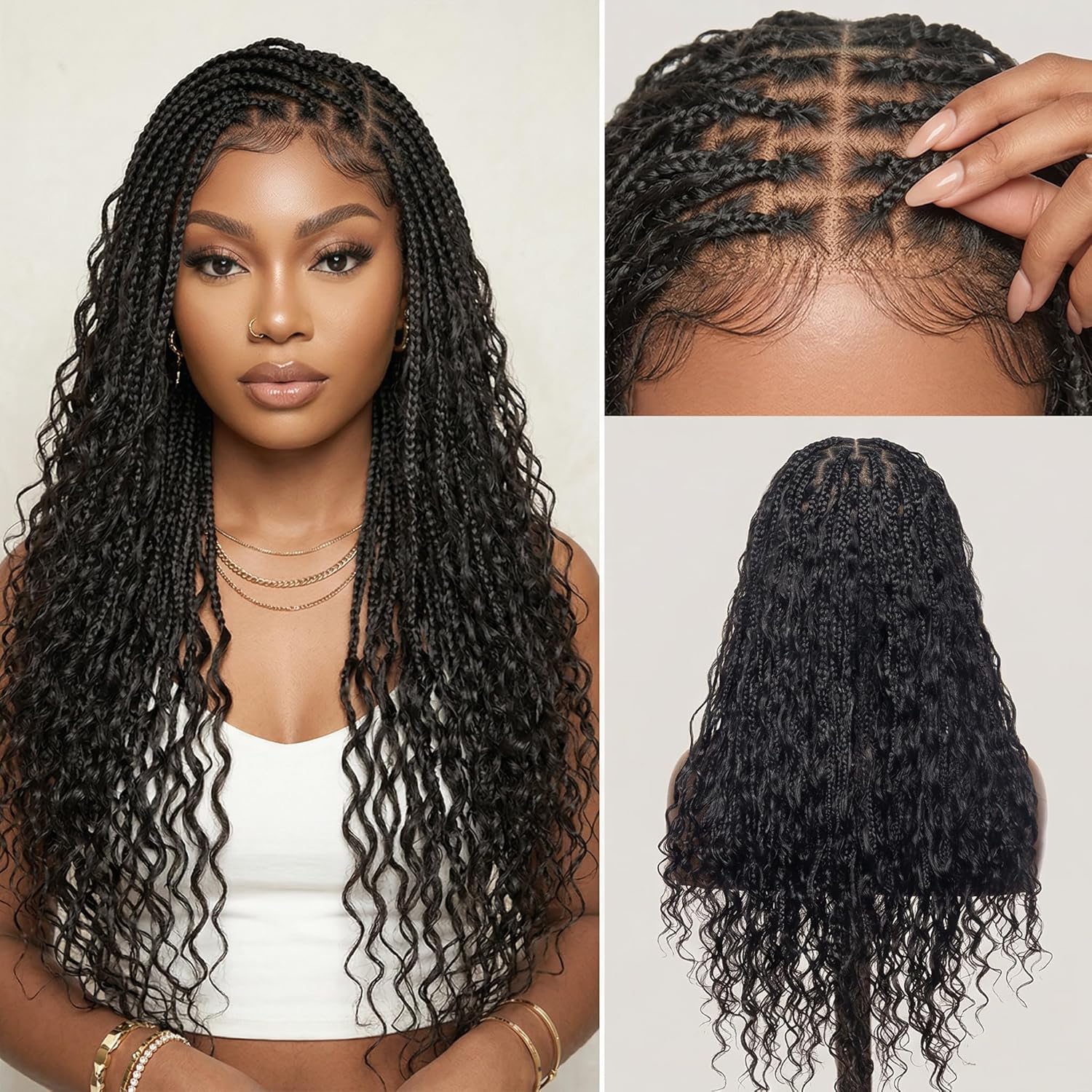 | Other Special Features of the Product | Full Lace, Human Hair Boho Curls, Knotless Box Braids, Real Swiss HD Lace, Triple Secured Wig Cap |