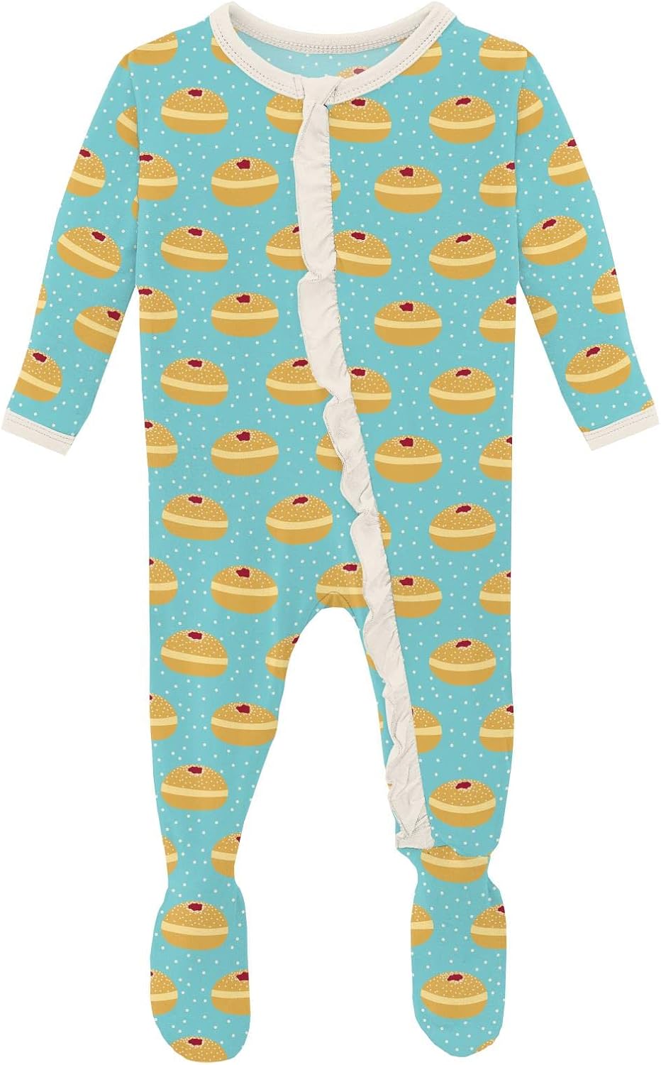 KicKee has your dream footie, designed to wrap your little one in buttery-soft goodness. For extra style, snuggle up in these footies rimmed with soft ruffles, including adorable rear ruffles. Footies are a smart garment choice for keeping babies and kids warm while allowing for movement. Made from our KicKee Signature Blend fabric, these footies are super soft to the touch, thanks to 95% Viscose from Bamboo, and stretchy from 5% Spandex, so the outfit moves with your child. The front zipper makes for easy changes, and it’s topped with a zipper guard so it won’t accidentally pinch the skin. Plus, the feet have fluffy soft fleece inside and no-slip grips on the outside. Footies are designed to be a snug fit so that they are safe to sleep in and meet all CPSC safety standards, and we never treat our fabric with flame retardant. Our footies are also easy to care for! Simply machine wash with similar fabrics on a gentle cycle and tumble dry low. Check out our collection of original prints and coordinating styles at the KicKee Amazon Store.