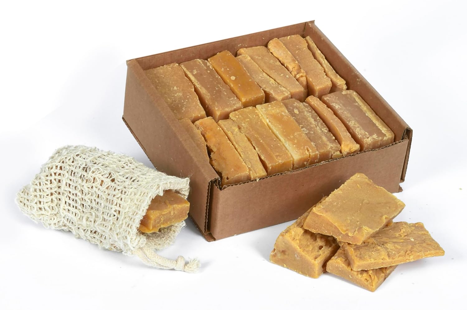 This is 4 pounds of bulk Castile, Cold process soap-end cut-offs, and an exfoliating soap saver scrubby eco bags! Just hang the exfoliating hemp soap bag in the shower and never have to deal with your soap sliding off scummy holders! Beautifully packaged in a BeeTheLight logo gift box! The only Castile cold process soap we are aware of made from 100% fair trade, organic and sustainably produced oils . Fair trade matters! A truly all-purpose soap of the highest possible quality Thick, creamy lather: a small amount is mild and gentle on the skin and a little goes a long way!
