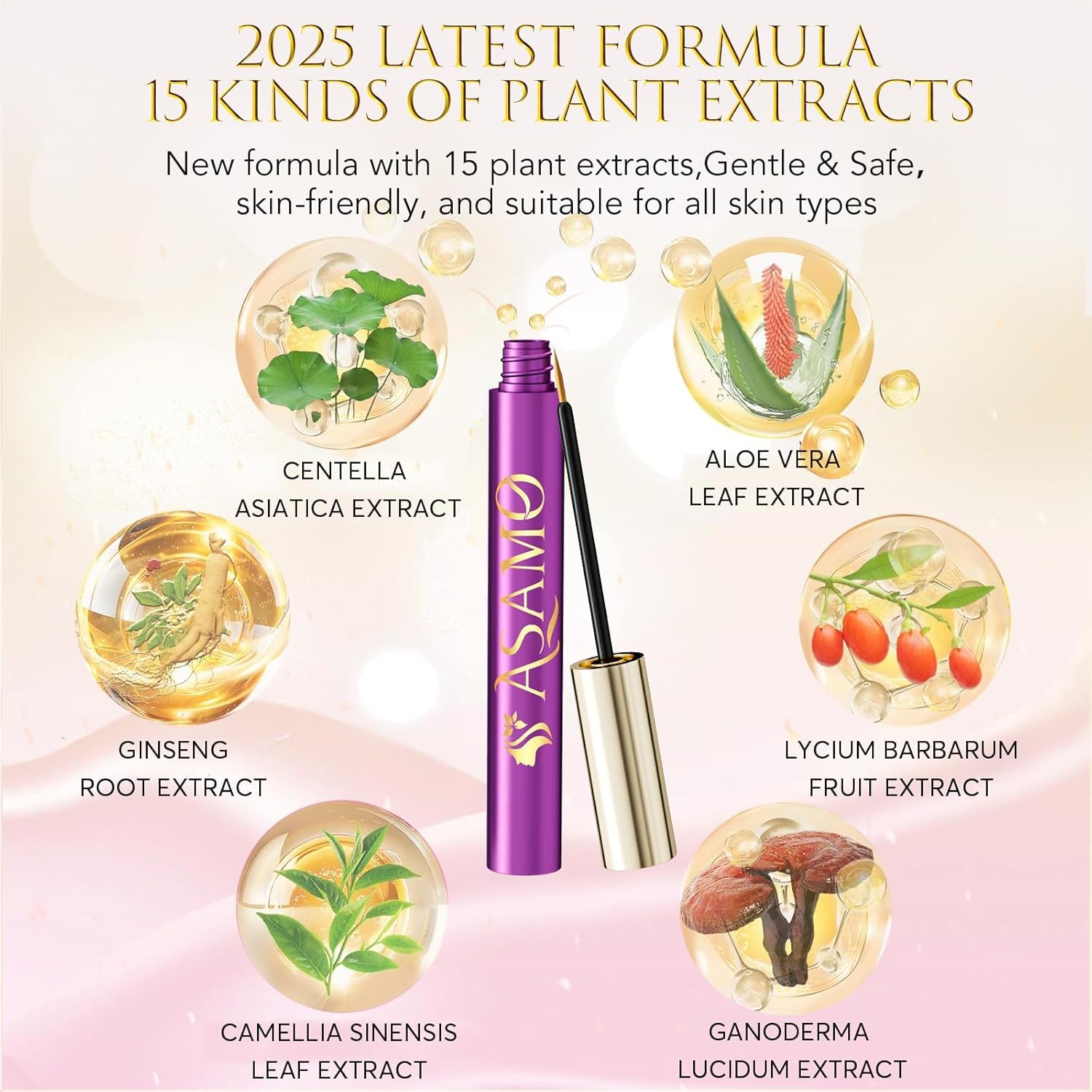 | Product Benefits | 【15-Plant Extract Eyelash Serum】ASAMO Eyelash Serum is formulated with the latest 2026 formula, enriched with 15 plant extracts. This gentle yet powerful blend is not only skin - friendly but also suitable for all types, ensuring a safe and effective lash - enhancing experience without any harsh chemicals., 【Elegant Aesthetic】The ASAMO lash serum boasts an exquisite golden design. The gleaming golden bottle radiates luxury and sophistication. It not only works wonders for your lashes but also adds a touch of opulence to your vanity, perfectly blending beauty and functionality., 【Professional Craftsmanship, Proven Results】 ASAMO's lash serum is a testament to professional expertise. Formulated by ASAMO's founder in collaboration with 24 medical doctors, it combines science and beauty. Tested by over 200,000 women, this exclusive formula has been rigorously evaluated for effectiveness and safety., 【Simple Routine, Quick Results】 Incorporate ASAMO lash serum into your daily routine. Apply it once in the morning and once at night. With this simple practice, anticipate noticeable lash transformation within 3 - 4 weeks. It's a fuss - free way to unleash the full potential of your lashes., 【Unlock Your Lashes, Reveal Your Beauty】 ASAMO's lash serum unlocks the hidden charm of your lashes. Its special formula activates the potential of lash follicles. Regular use enhances the natural allure of your eyes and boosts your confidence. Let ASAMO help your true beauty sparkle through your lashes. |
