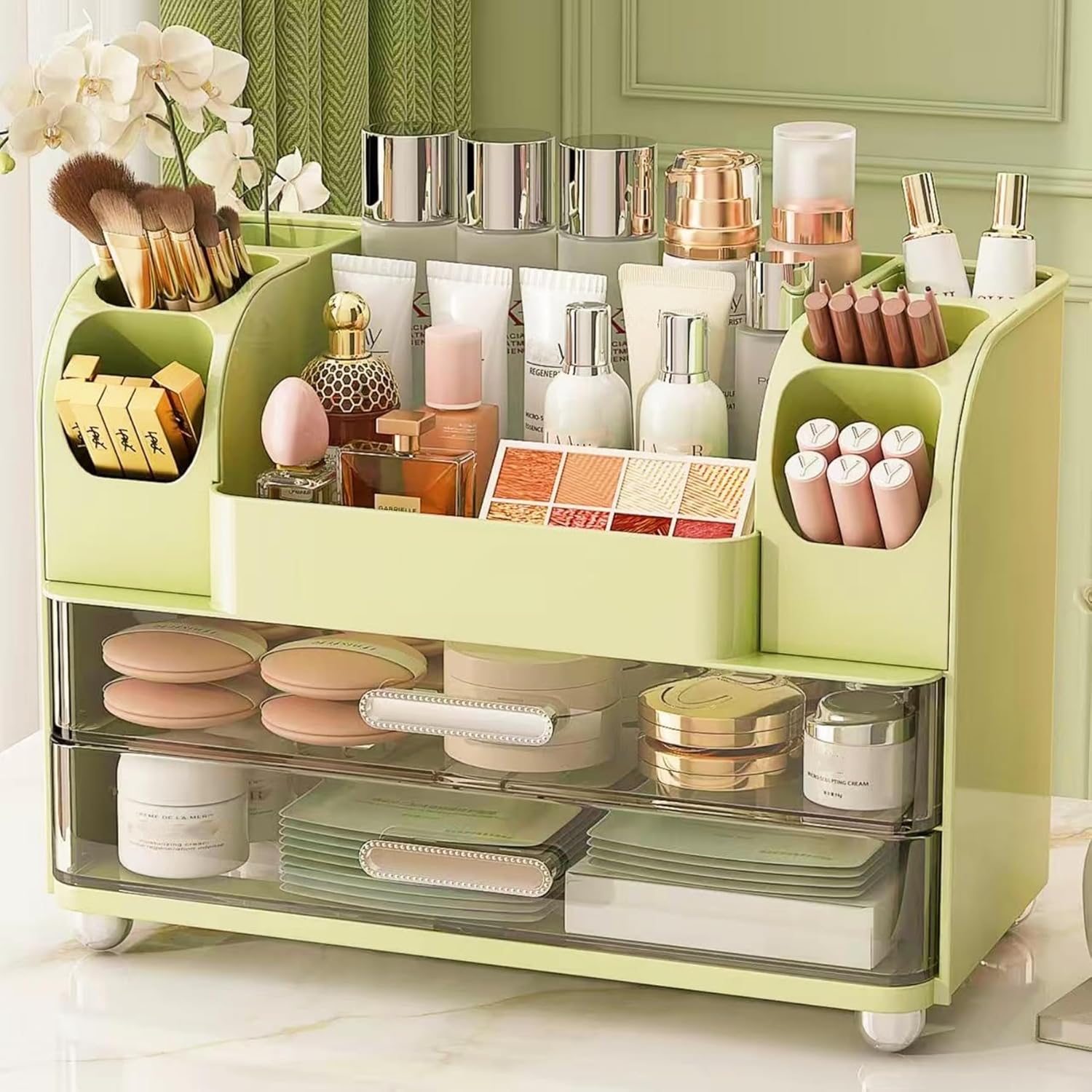 Makeup Organizer with Drawers for Vanity,Bathroom Countertop Organizer with Brushes Holder,Skincare Storage Organizer,Perfect Cosmetic Display Case for Cosmetics,Skincare,Lipstick and Beauty Essential