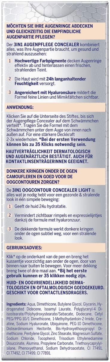 NIVEA Hyaluron Cellular Filler 3‑in‑1 Eye Care Concealer Cushion in Light is a compact skincare‑infused cosmetic product designed to offer a smooth and refined appearance to the delicate area around the eyes. This lightweight tinted eye concealer comes in a convenient 4 ml format with an integrated cushion applicator that allows for easy and precise application, making it practical for daily routines and on‑the‑go use. The formula combines skin‑friendly ingredients in a balanced composition that enables even colour coverage and enhances the look of the eye contour. The cushion design ensures a hygienic application experience and supports careful distribution of the cream‑like texture without excess product waste. Users appreciate how this item fits seamlessly into makeup bags, travel kits, and everyday cosmetic collections. This product is crafted according to established cosmetic formulation standards and reflects NIVEA’s longstanding expertise in skincare and cosmetic care. The light shade is selected to suit a range of skin tones and complements other makeup or facial care products in your routine. Dermatologically tested and cosmetically compliant, it delivers a smooth, even finish for daily cosmetic use.