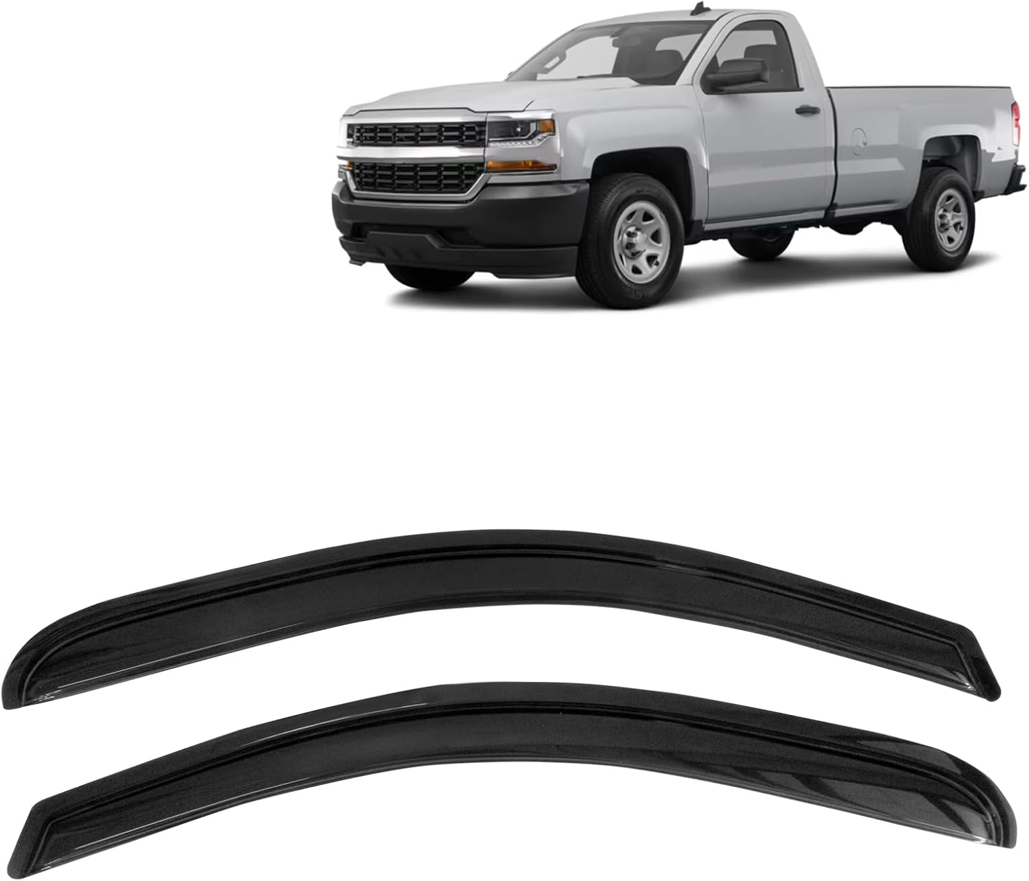 Upgrade Your Drive with Premium Car Window Rain Guards Protect your vehicle’s interior and enjoy fresh airflow in any weather with these custom-fit side window deflectors. Designed exclusively for the Chevy Silverado GMC Sierra Extended Cab 2019-2025, these rain guards provide a perfect OEM-style fit without obstructing visibility. Why Choose Our Window Visors? Perfect Fit: Laser-measured to ensure flawless integration with your car’s contours. Quieter Ride: Reduces wind buffeting and highway noise when windows are slightly lowered. Ventilation Control: Prevents stuffiness by allowing air circulation even during rain or snow. UV Protection: Blocks up to 90% of harmful UV rays to protect your dashboard and upholstery. Included: 4-piece set (front + rear windows) with pre-applied adhesive, alcohol pad & adhesion promoter. Note: For best results, install at room temperature above 60°F/15°C and avoid car washes for 48 hours after installation.