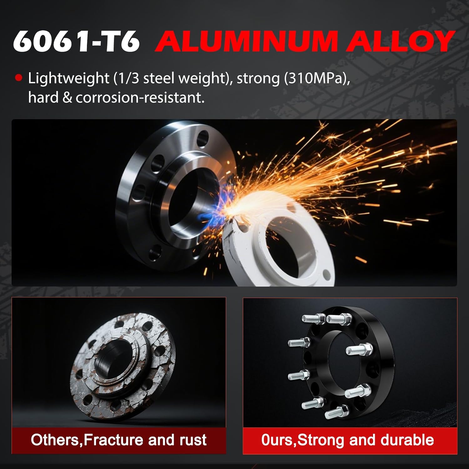 Autodevil Wheel spacers not only improve your vehicle's handling performance but also enhance its visual appeal. By widening the wheel track, they increase stability and maneuverability, ensuring a safer and more enjoyable driving experience.Features:1. Forged 6061-T6 aluminum spacers are lightweight yet durable, with rust-resistant high-hardness bolts. CNC machining ensures precision and longevity.2. Enhanced Performance:Improve ride smoothness and stability on rough terrain while giving your vehicle a wider, more aggressive stance. Fixes wheel fitment issues.3. Installation Tips:Use glue for secure fit, realign wheels after install, and re-torque lug nuts post 50-100 miles.NOTE:Confirm vehicle compatibility before purchase.