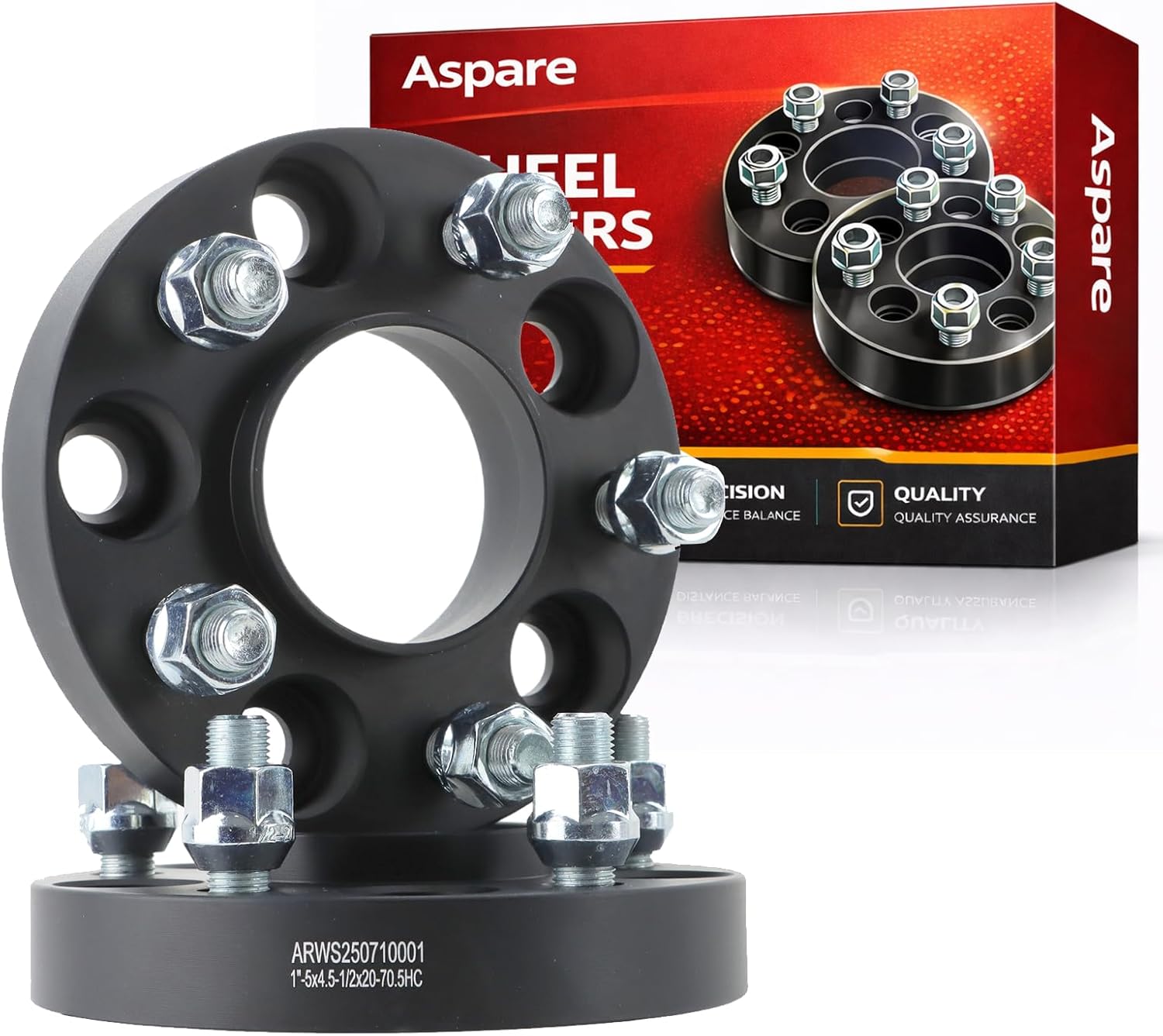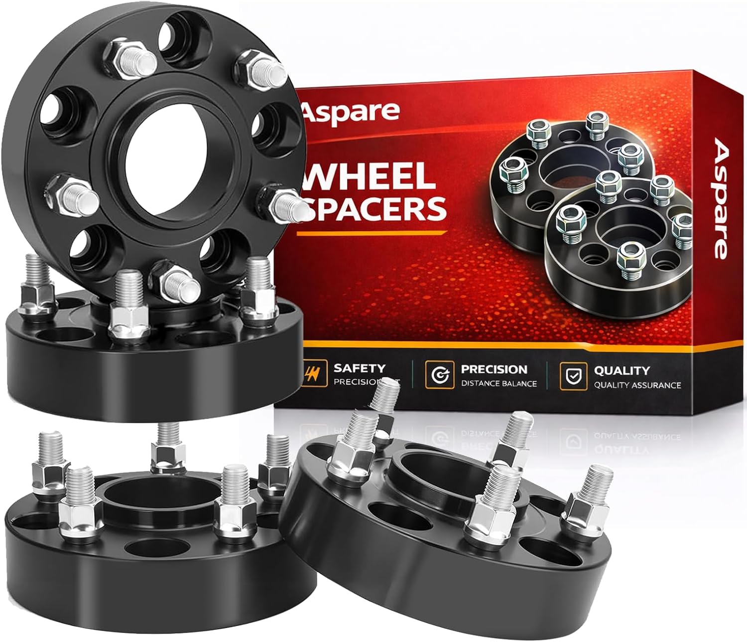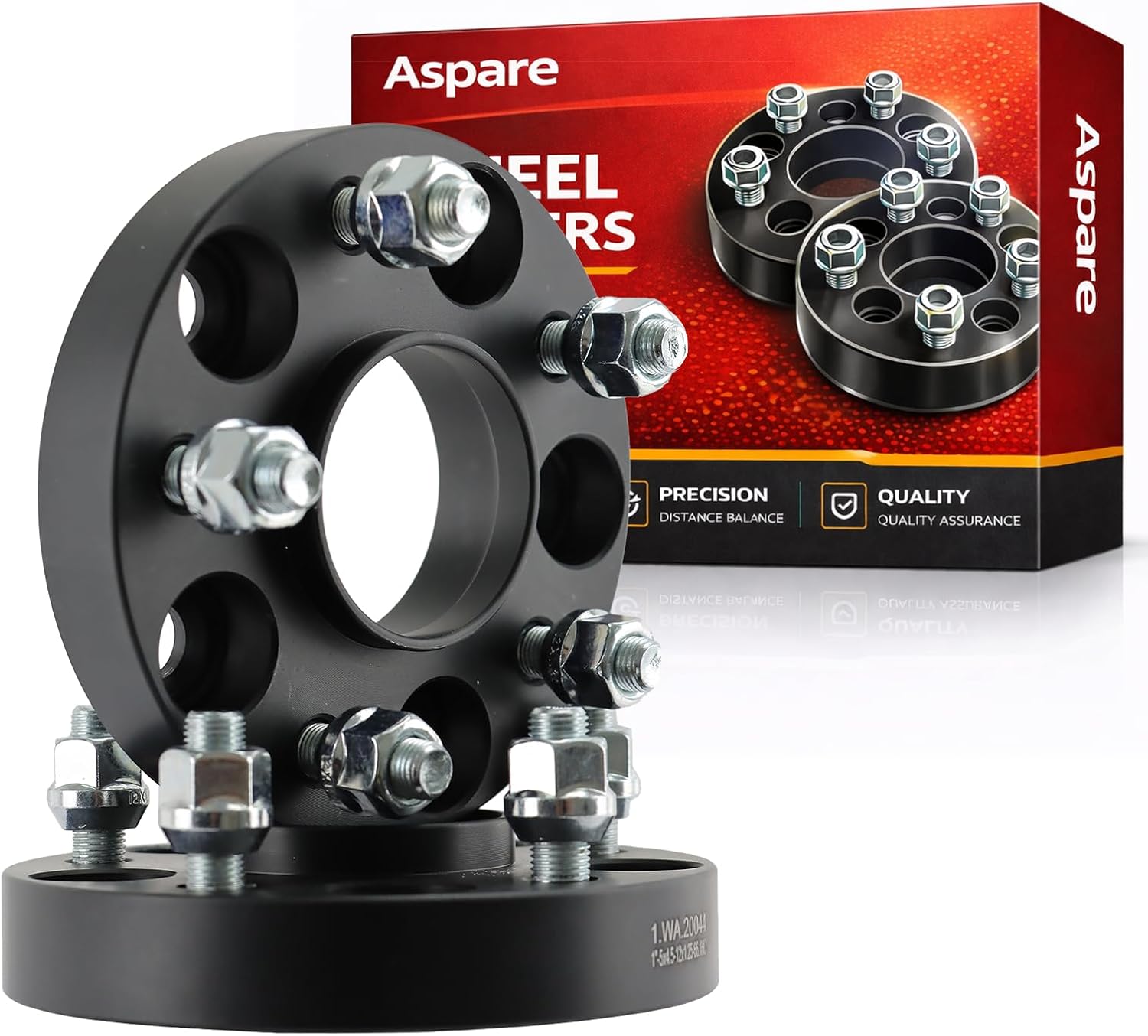 Aspare Hubcentric Wheel Spacer KitUpgrade your vehicle stance, wheel clearance, and overall handling with Aspare precision-engineered hubcentric wheel spacers. Designed for vehicles with 5x4.5" bolt pattern, 64.1mm hub bore, and 12x1.25 studs, these spacers move the wheels out by 0.75" for a wider, more aggressive look and more confident driving feel.Forged Aluminum StrengthMade from high-strength forged 6061-T6 aluminum alloy, these wheel spacers combine durability with lightweight performance. Precision CNC machining provides accurate dimensions, dependable fitment, and strong resistance to corrosion and deformation.Performance BenefitsBy widening the track width, these spacers help improve cornering stability, support a stronger vehicle stance, and create extra room for larger tires or upgraded brake setups. A practical upgrade for drivers looking for both style and function.Hubcentric Precision FitThe 64.1mm hubcentric center bore is designed to sit flush on the vehicle hub for improved wheel centering, reduced vibration, and smoother driving compared with generic lug-centric spacers.Vehicle CompatibilityCompatible with vehicles such as:Please confirm your vehicle bolt pattern, hub bore, and stud size before purchase.Please verify your vehicle bolt pattern, hub bore, stud thread size, and spacer thickness before purchasing to ensure proper fitment.InstallationThis wheel spacer kit features a direct bolt-on design for straightforward installation using standard garage tools. Professional installation is recommended to ensure proper torque and safe operation.