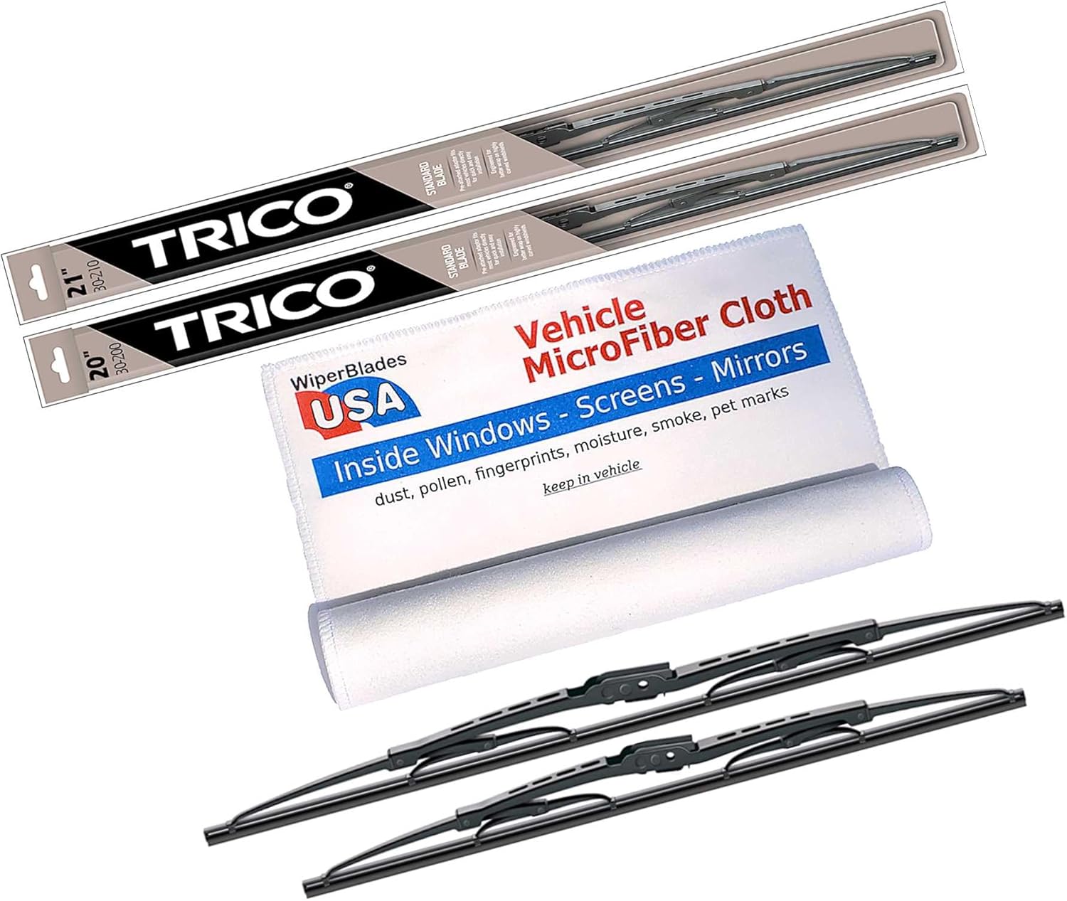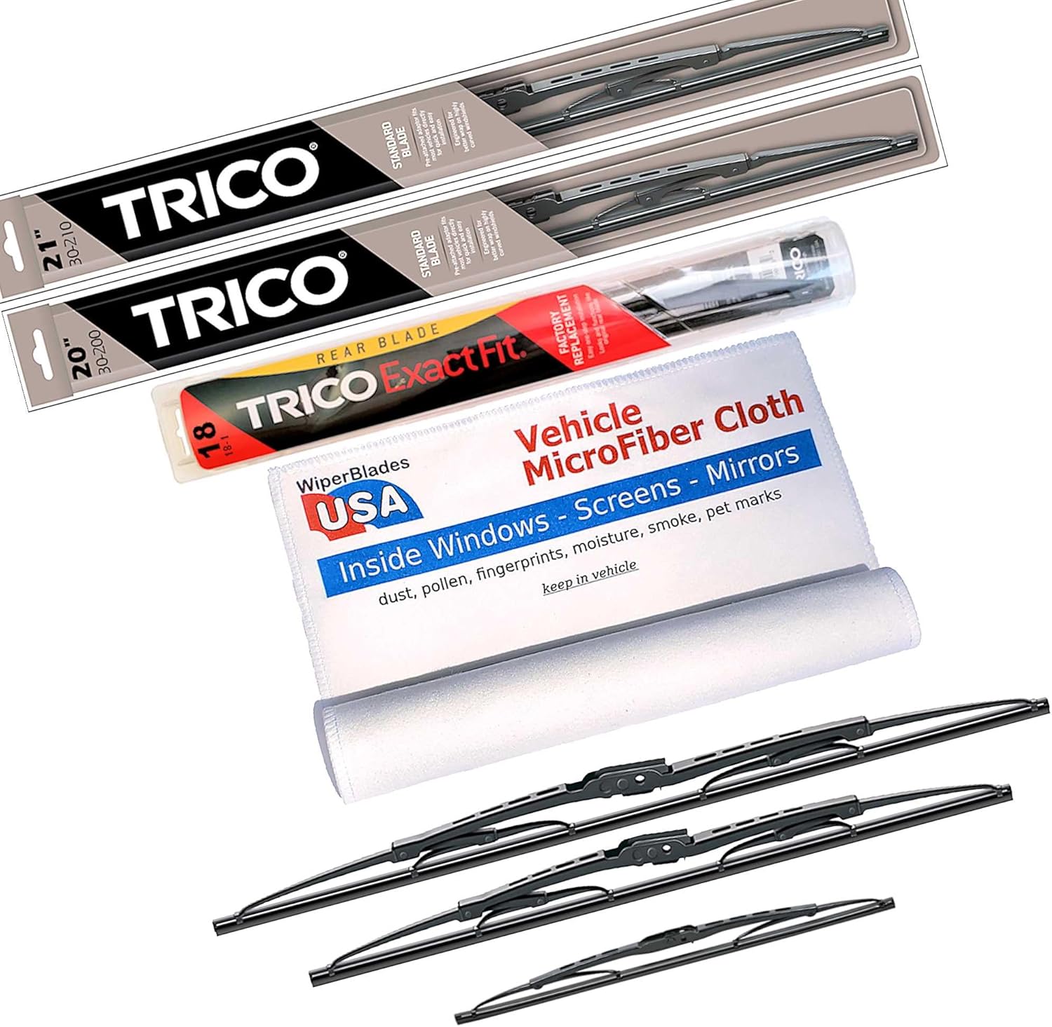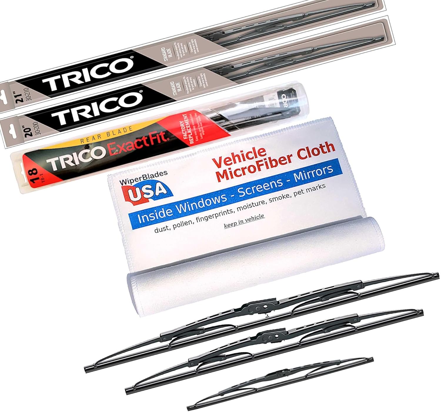 Wiper Blades Set +Trico ExactFit Rear wiper compatible with BMW 325xi 2001!Trico Steel Frame Blade - Affordable and Dependable Trico Traditional Steel Wiper Blades are a great choice and are compatible with BMW 325xi 2001 because: Aerodynamic steel frame provides exceptional strength and durability Precision-cut rubber edge creates superior wiping actionSteel Frame structure is engineered for better wrap on today’s highly curved windshieldsTraditional wiper blade designAnd Trico is the #1 wiper manufacturer in the United States. So you know you can depend on them.