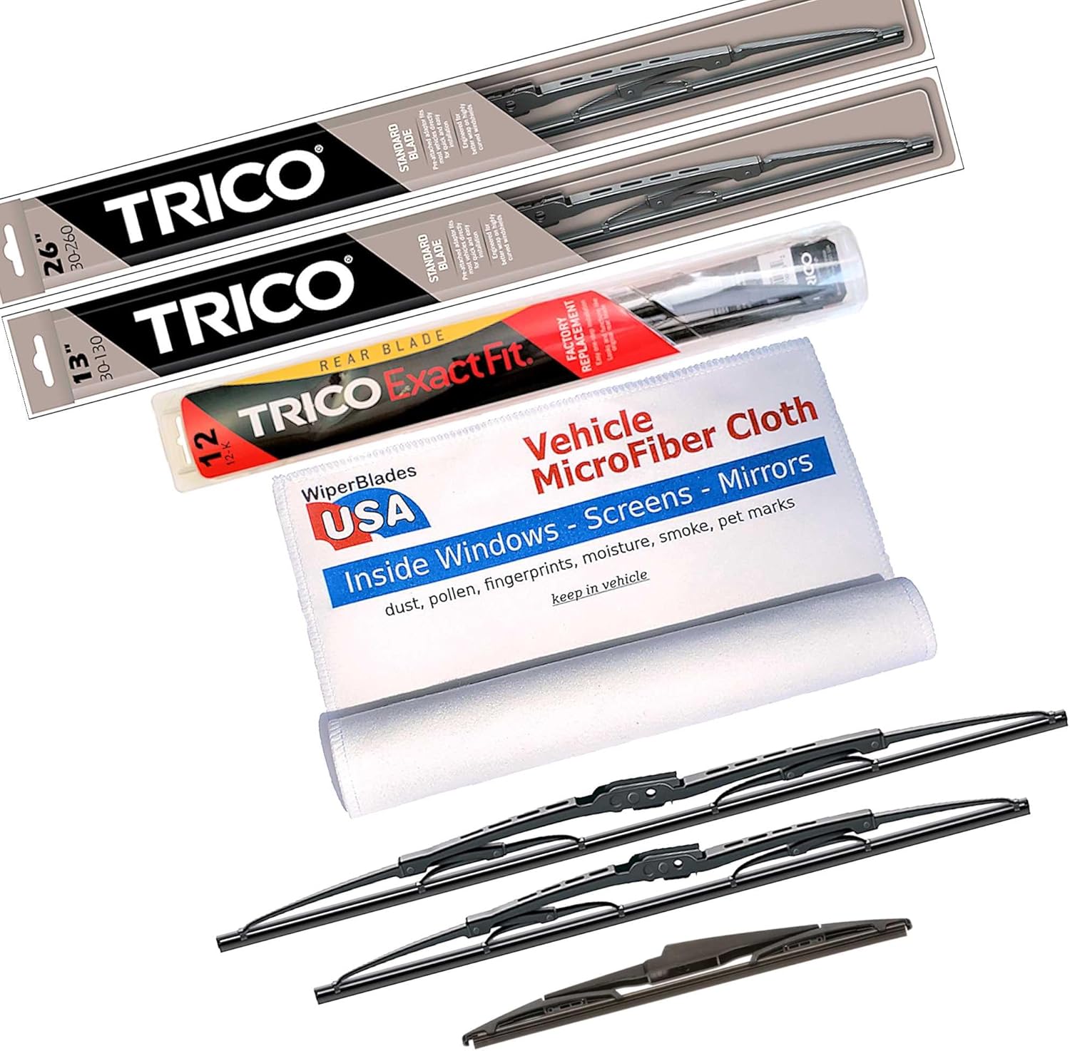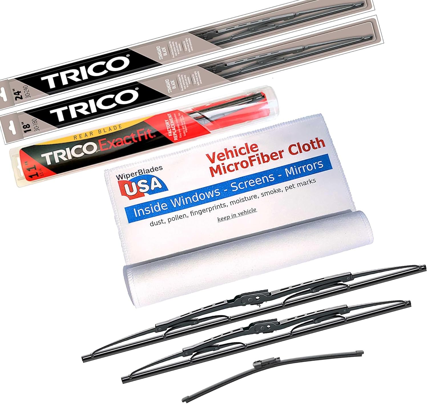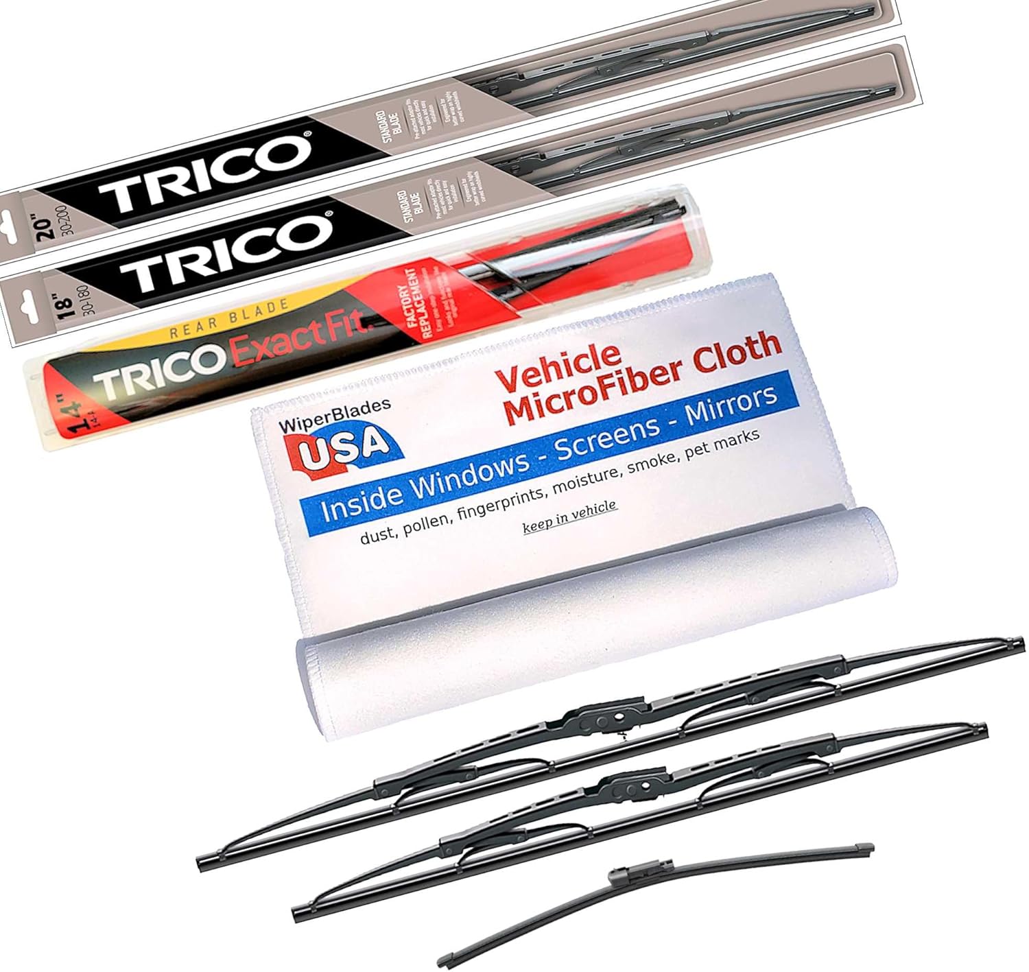 Wiper Blades Set +Trico ExactFit Rear wiper compatible with Hyundai Santa Fe 2022!Trico Steel Frame Blade - Affordable and Dependable Trico Traditional Steel Wiper Blades are a great choice and are compatible with Hyundai Santa Fe 2022 because: Aerodynamic steel frame provides exceptional strength and durability Precision-cut rubber edge creates superior wiping actionSteel Frame structure is engineered for better wrap on today’s highly curved windshieldsTraditional wiper blade designAnd Trico is the #1 wiper manufacturer in the United States. So you know you can depend on them.