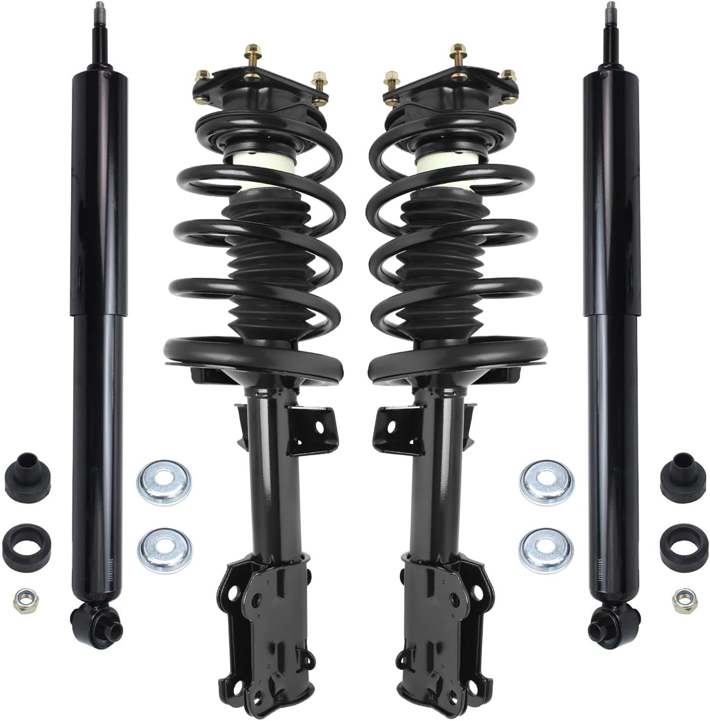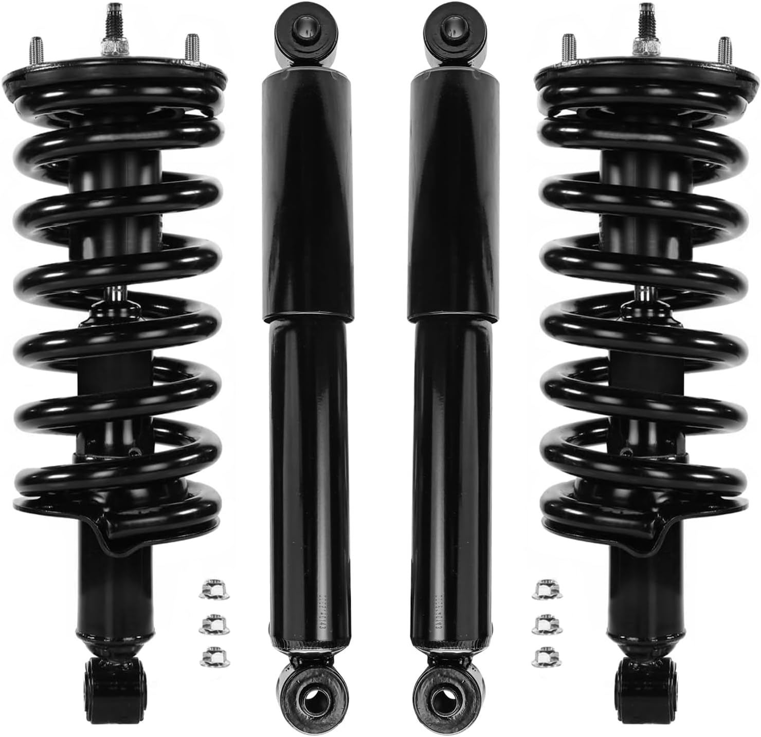 Kit Includes:1x Front Strut w/ Coil Spring Assembly - Driver Side - 1333945L1x Front Strut w/ Coil Spring Assembly - Passenger Side - 1333945R2x Rear Shock Absorbers Assembly - Driver and Passenger Side - 437361Fitment:Replacement for 2016-2020 Lexus RX350 (Base; Without Electronic Adjustable Suspension)Replacement for 2018-2019 Lexus RX350LIntroduction:Detroit Axle is a leading global retailer and distributor of OE re-manufactured and new aftermarket auto parts. We are committed to providing first-class products and outstanding customer service at an incredible value. Our rapidly-expanding product line includes CV Axles, Wheel Hub & Bearings, Suspension & Chassis parts, Complete Strut Assemblies, Shock Absorbers, Drilled & Slotted Brake Rotors, Conventional Brake Rotors, Ceramic Brake Pads, Brake Fluids, Brake Cleaners, Rack & Pinion Assemblies, Gearboxes, Drive Shafts, Transmissions, Brake Calipers, Wheel Lug Nuts, and more. With over 30 years of experience, we are proud that millions of customers around the world rely on Detroit Axle parts. We have two Metro Detroit storefront locations on the north and west sides of the city. Our flagship location, in the heart of Detroit's 8 Mile Road, is a combined retail storefront and over 180,000 square feet of the warehouse that serves as our global distribution center.
