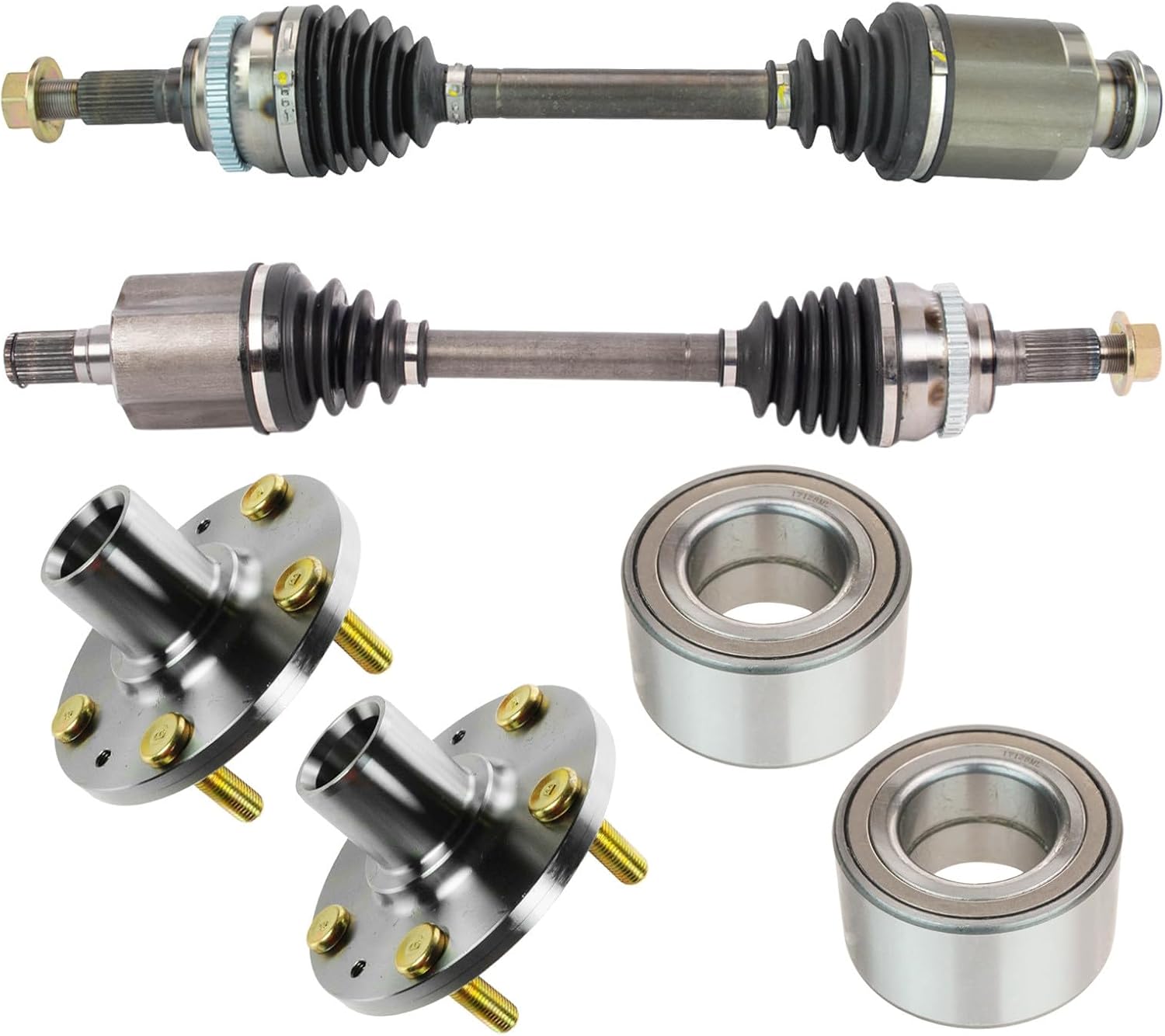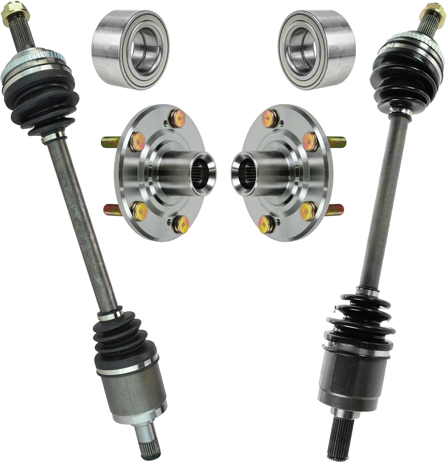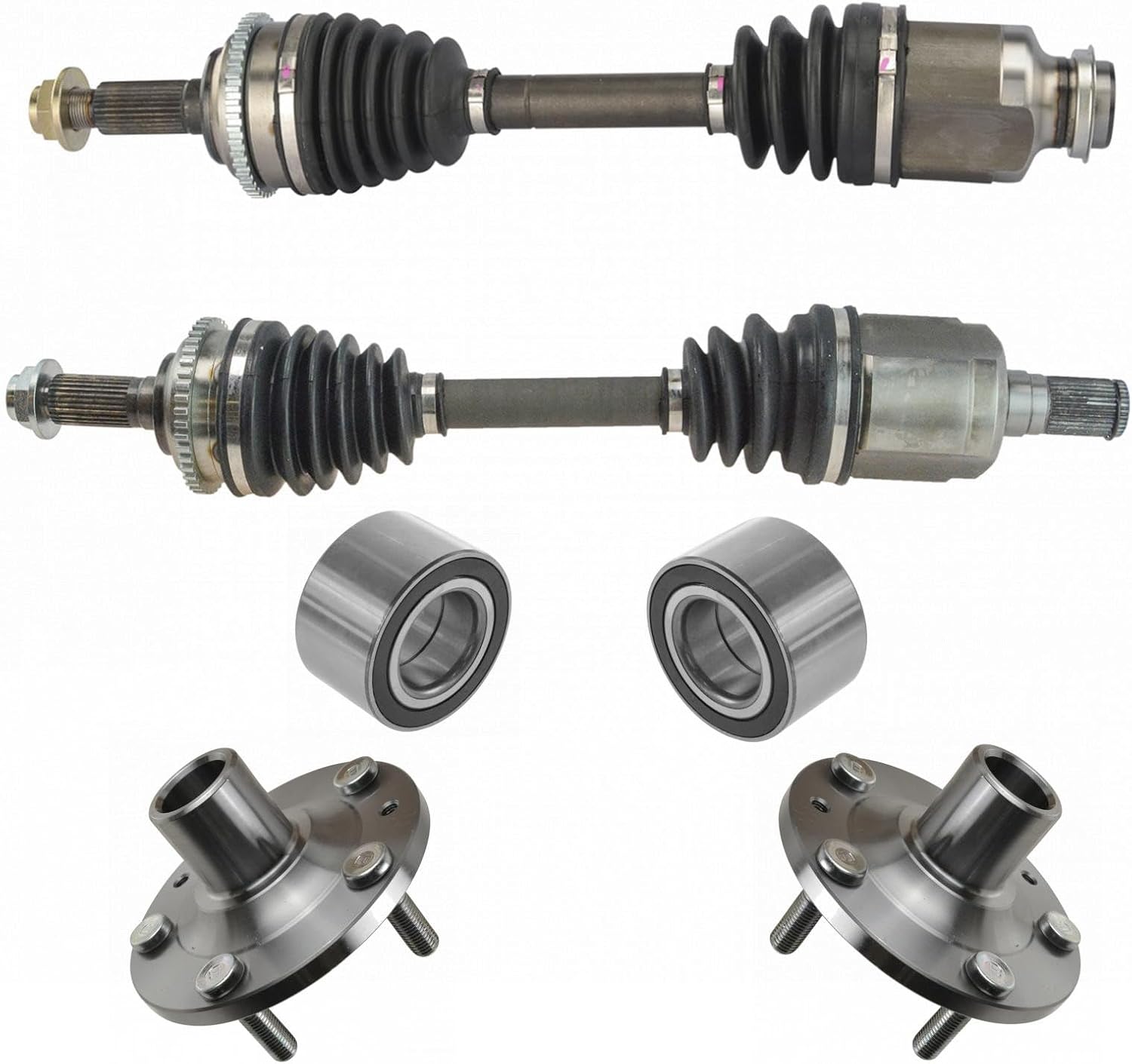 6 Piece Drivetrain KitKit Includes(2) Front CV Axle Assemblies(2) Front Wheel Bearings(2) Front Wheel HubsFitmentHonda Civic 2006-11 - Automatic Transmission FrontProduct AttributesCV Axle Features & Benefits: 100% New ComponentsQuantity: 6 PieceCV Axle Features & Benefits: Heat TreatedCV Axle Features & Benefits: Precision MachinedProduct Features 100% New: Manufactured to tighter tolerances for extended service life Upgraded Elastomer: Premium seals to extended service life Moly Greased: Specifically-designed grease shield to reduce premature wear Restored Performance: Refreshed steering system for improved road-feelItem DetailsTRQ drivetrain kits are manufactured using premium raw materials to restore original performance. Each TRQ drivetrain component is designed to be a direct, maintenance-free replacement to the stock unit. To extend the service life of your drivetrain, TRQ recommends replacing wheel hubs, bearings, and constant velocity (CV) drive axles at the same time to ensure even wear of components and improved ride comfort. All products are fit and road-tested in our Massachusetts R&D facility to ensure we deliver on our promise of Trusted Reliable Quality.Reference Numbers051-427836108944300-SMG-G0144300-SNA-95144305SNA00044305SNEA0144306SNA00044306SNA90044306SNEA0144306SNEA1144306TR0A0244600-SMG-G0044600SNAA0051008966-423266-4233664233735-0007930-627ADS00136FW78H510089HO-8409HO-8410HO8219HO8409HO8410HUB00014HUB00241NCV36007NCV36568NCV36569SPK627WB000052WB510089WE60377