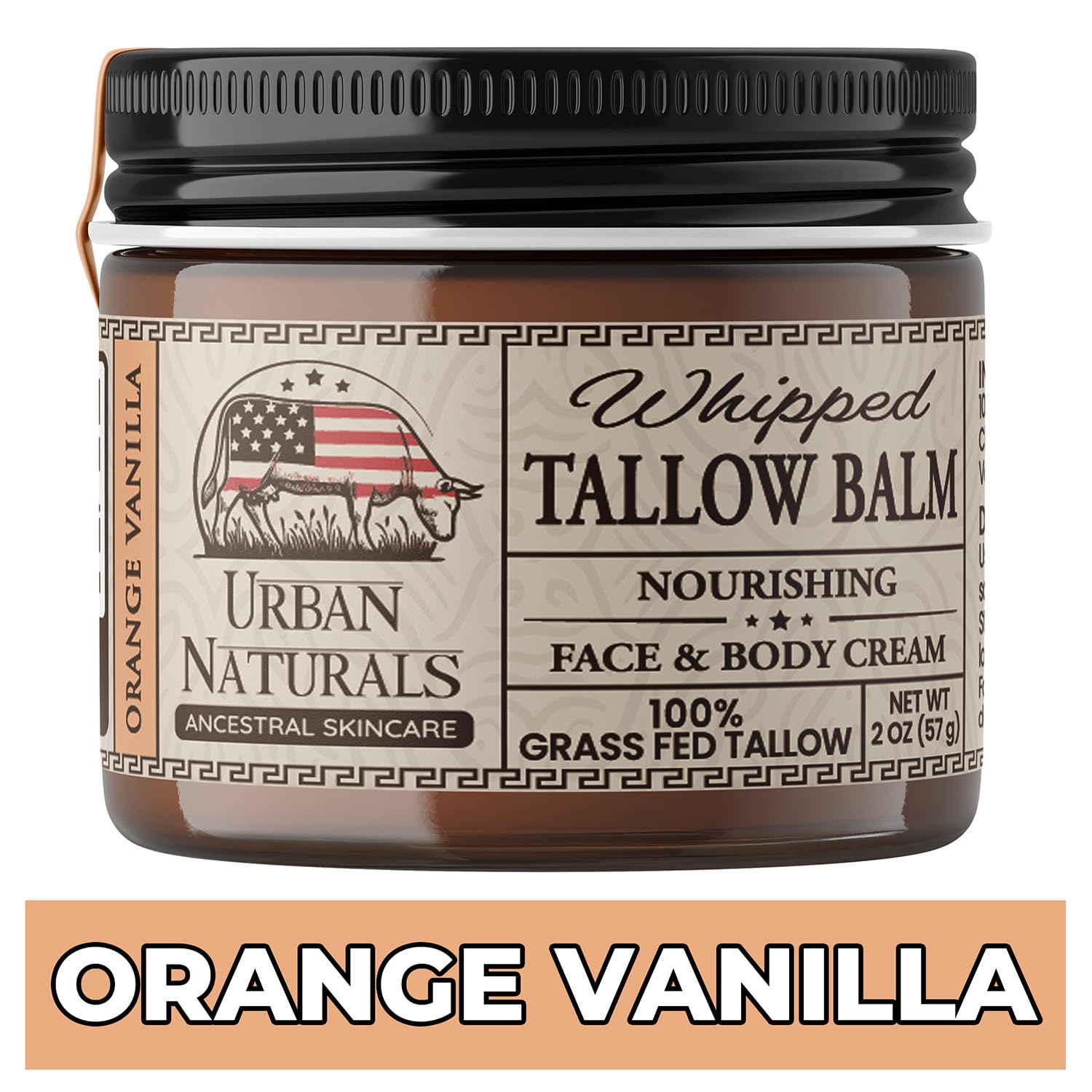 Urban Naturals Handmade Whipped Tallow Balm (Orange Vanilla) 100% Grass-fed Organic Beef Tallow Skin Cream Moisturizer for Face with Jojoba Oil, for Eczema, Baby - Made in USA