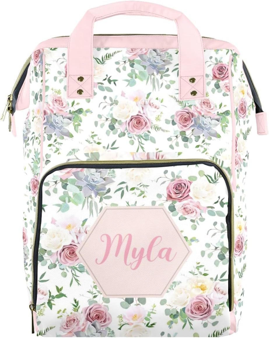 This Personalized Name Diaper Bag offers plenty of storage to fit all of your mom or dad essentials for your baby girl or boy! Material: Made from waterproof nylon. Size: Measures approximately 11.02"(L) x 6"(W) x 17.79"(H) x 3.1"Parts structure: One main capacity pocket, 2 side pockets, 1 front zipper pocket, multi-pocket design, side zipper, easy to take away, spacious and separate bottle design area, easy to use. Multi Color & Design:Cute elements, so you can have one more decoration to decorate your holiday. Multifunction:A mesh pocket featured. Padded back and adjustable shoulder straps for ultra comfort and stability. Multi function backpaks are suitable for many occasions. Zipper closure allows it easy to open and close. Suitable Different Occasions:The custom diaper bag for baby boy girl is fit for many occasions, such as travel, shopping, hiking, camping, work, going out etc.Perfect Gift:You can send the custom diaper bag to your friends who is a new mom, dad. Or send it to your sister, brother, husband, wife, colleague. As a festival holiday gift present on mother's day, father's day, birthday etc.Start Your Customization:1. Choose The Style You Need;2. Click The "Customize Now" Button;3. Upload Any Name