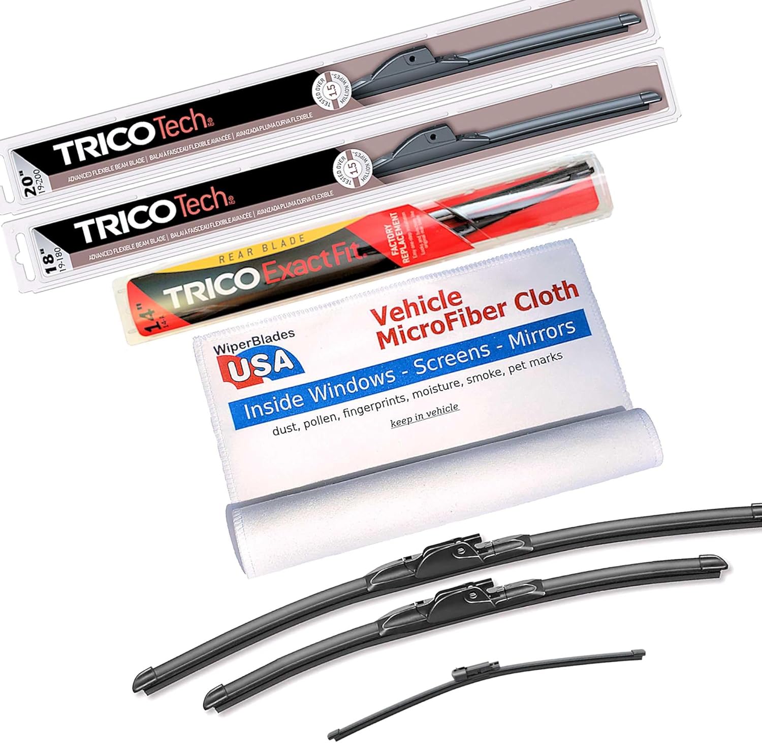 Beam Wiper Blades Set +Trico ExactFit Rear wiper compatible with Hyundai Palisade 2025!Trico Tech Beam Wiper Blades - Advanced Flexible Beam Blade Trico Tech Beam Blades are a great choice and are compatible with Hyundai Palisade 2025 because: Trico Tech Wipers have a one-piece wiper structure eliminates areas for snow, ice and road debris to clog the wiper, providing excellent visibility in all types of weather Memory Curve Steel beam provides uniform pressure for a clean, clear wipeInnovative low-profile stylish design provides uniform wipe Superior all-weather performance Exclusive dual-point coupler prevents streakingSWIFT® Easy Connection Technology Precision cut wiping edge is tested to perform over 1.5 million cyclesAnd Trico is the #1 wiper manufacturer in the United States. So you know you can depend on them.