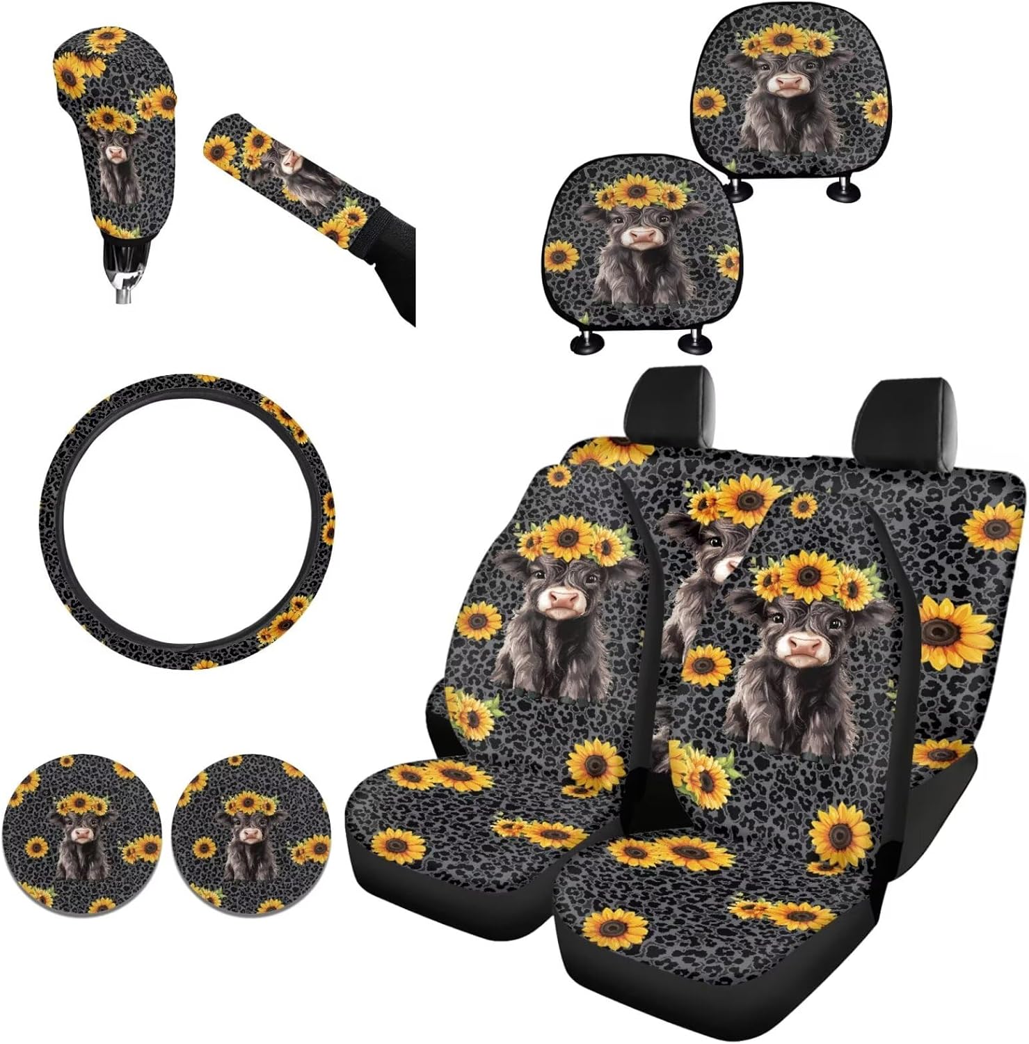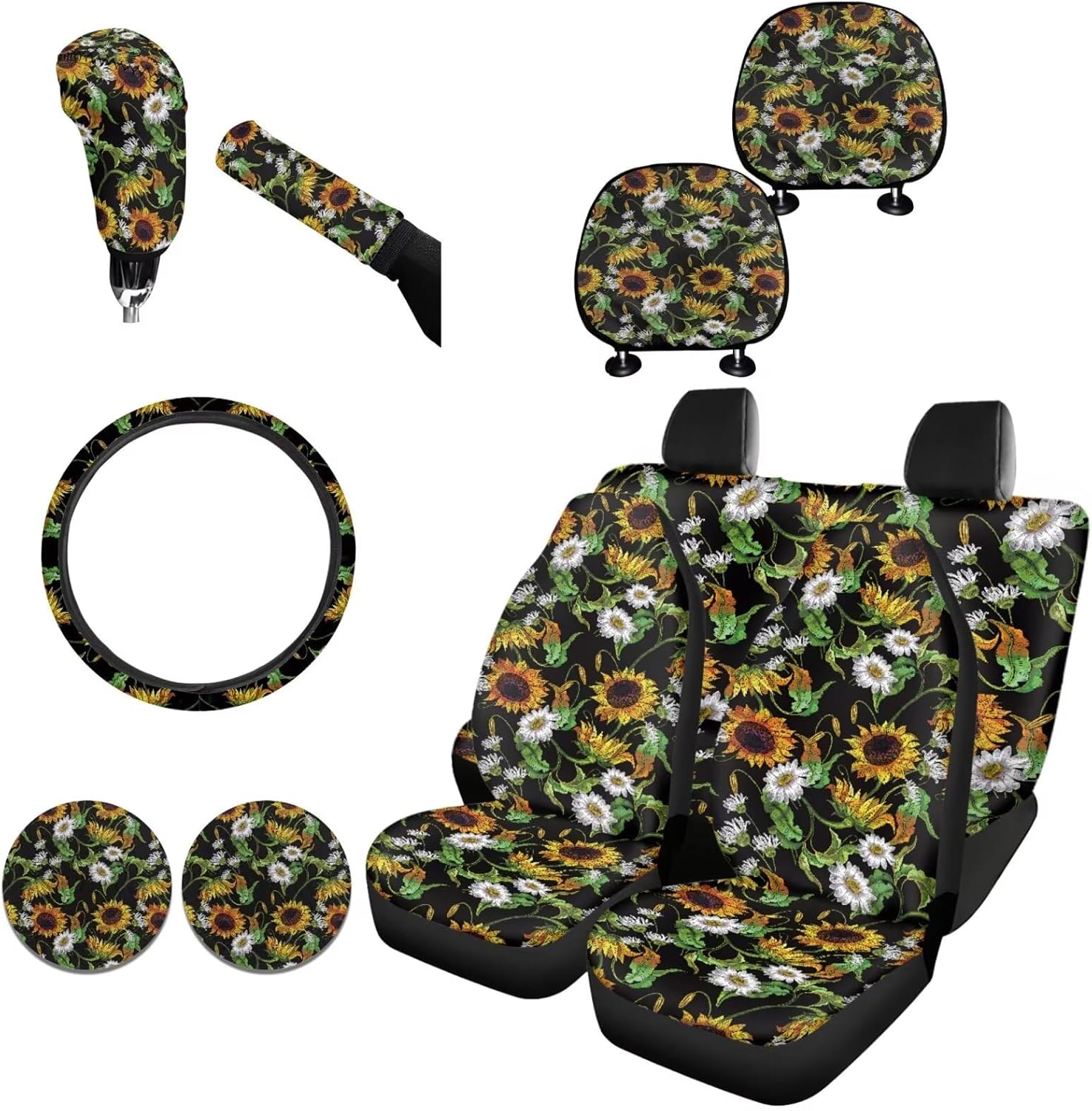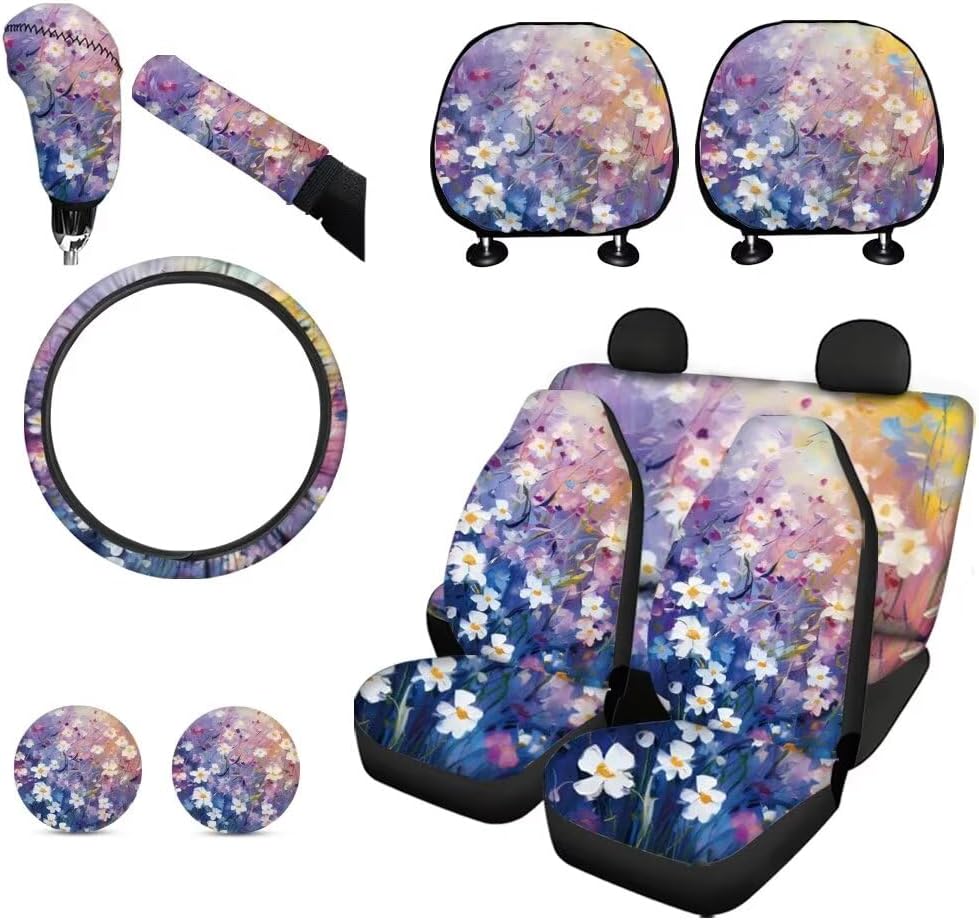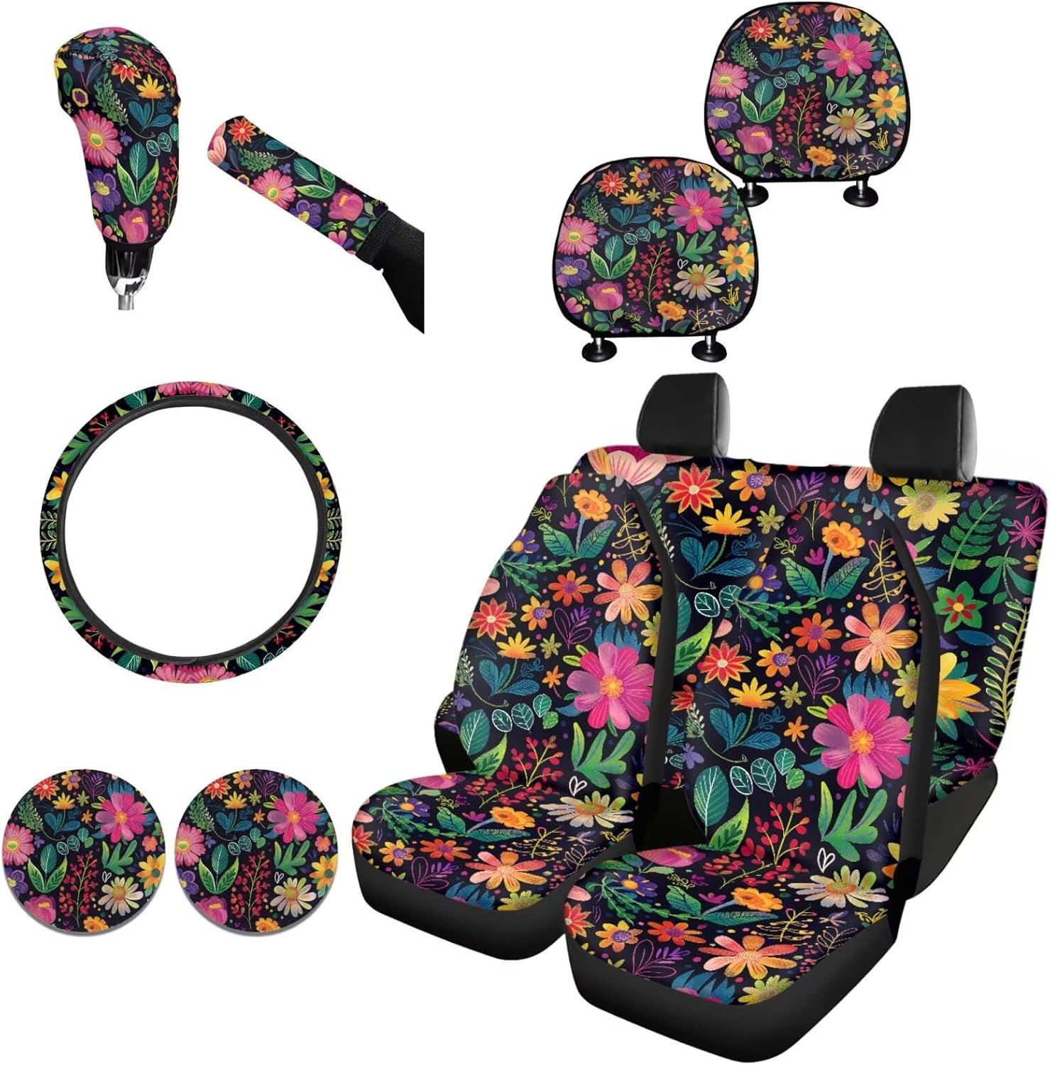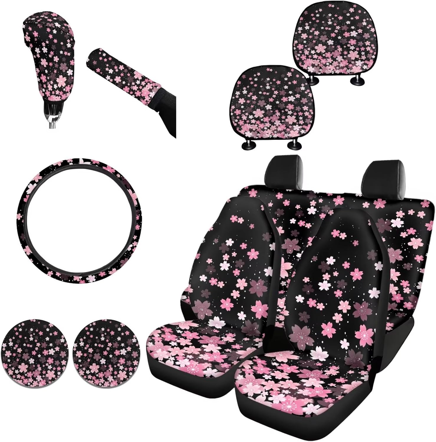 Package:All 10PCS,Includes 2Pcs Front Bucket Seat Covers+Rear Bench Cover+2Pieces Cup Coaster+Steering Wheel Cover+Gear Shift Cover+Handbrake Cover;These car seat covers is design to protect our car seat, bring more comfortable to our drivers. Suitable for almost universal automobile cars. Quick and easy installation,no ools required for installation. Pay attention to the Warining that these car seat covers should NOT be used on a seat with side airbags. Back Polyester fabric material, easy to clean and dry. washable ,no fading. Soft material keep hip and back comfortable in long time use. Keep your car seats from wear and stains. Elastic strap with hooks on the bottom of the seat covers, easy to install and remove. Universal-fit car seat covers will stretch to fit most car and SUV bucket style seats. Before buying please check whether your car seat is compatible.